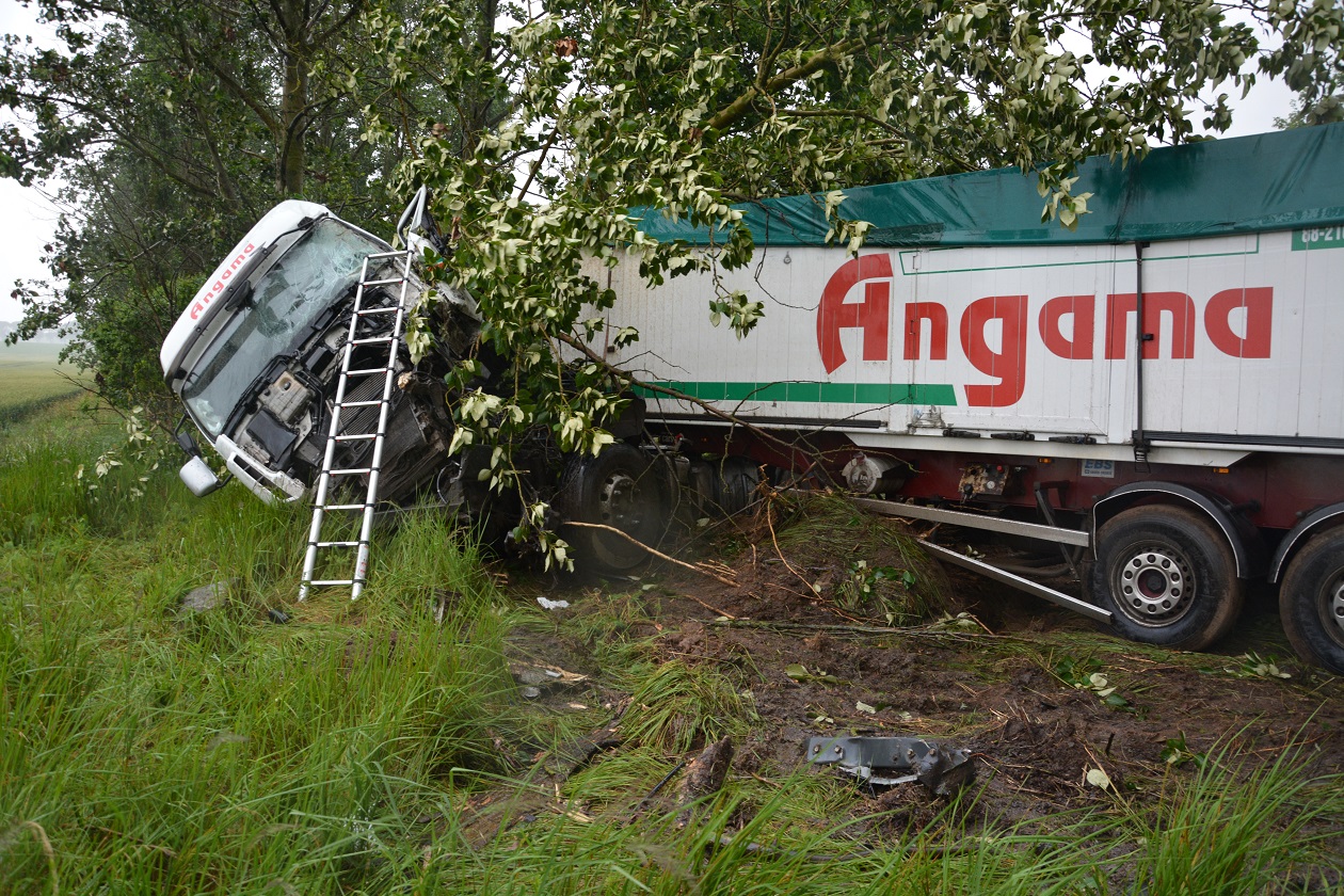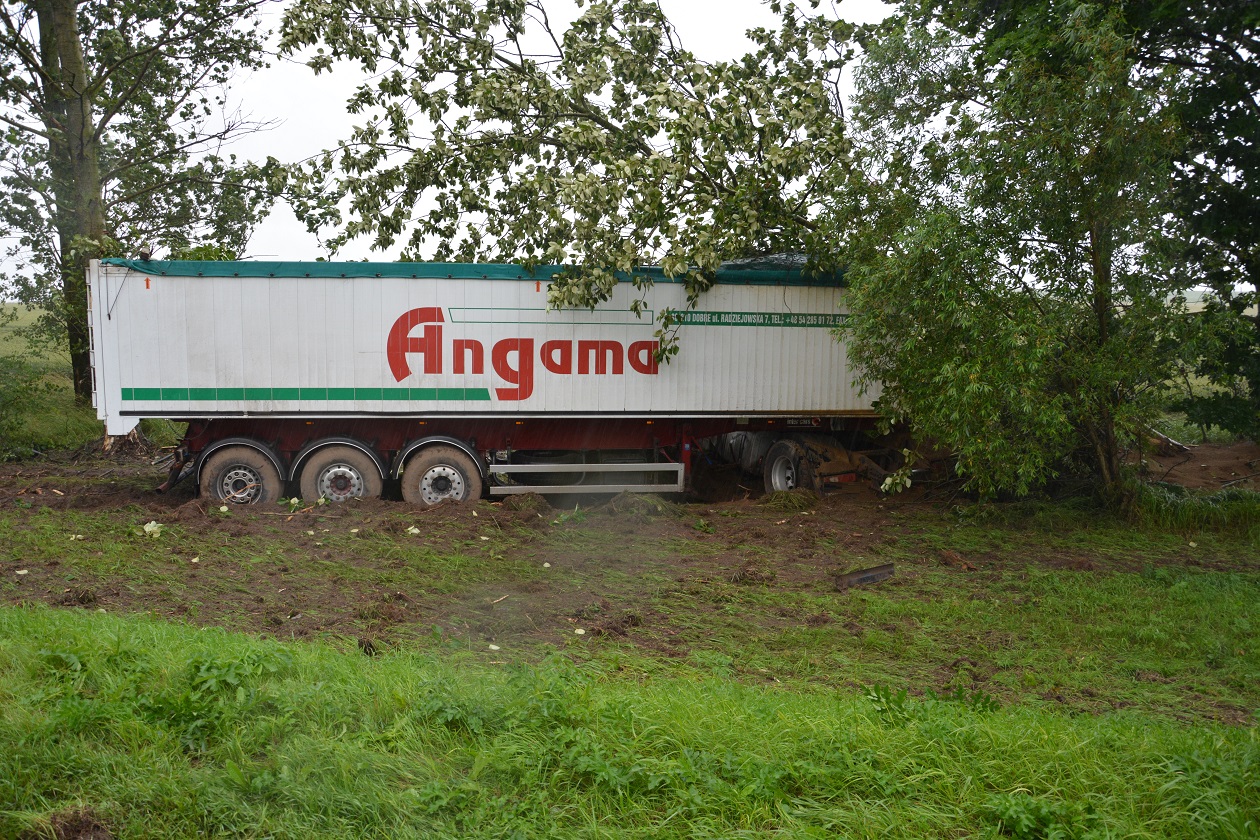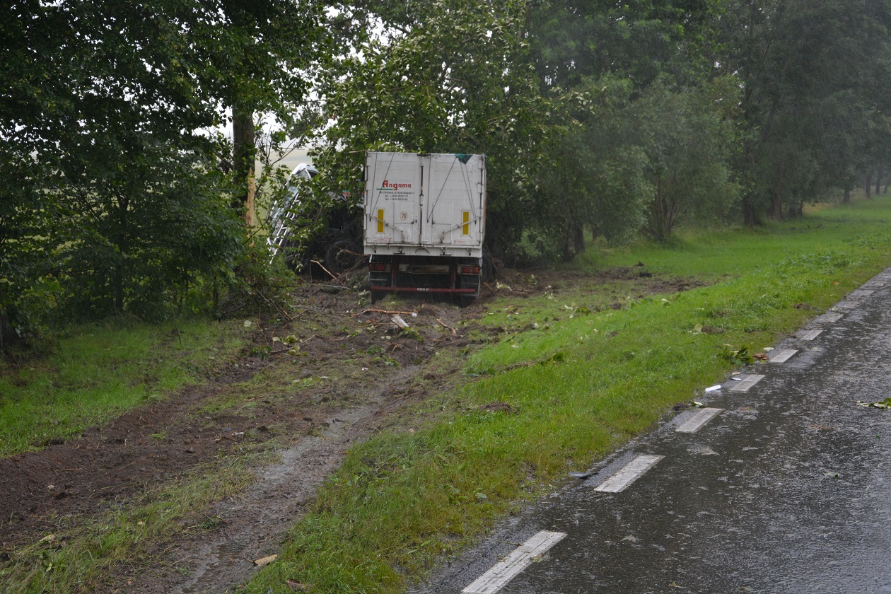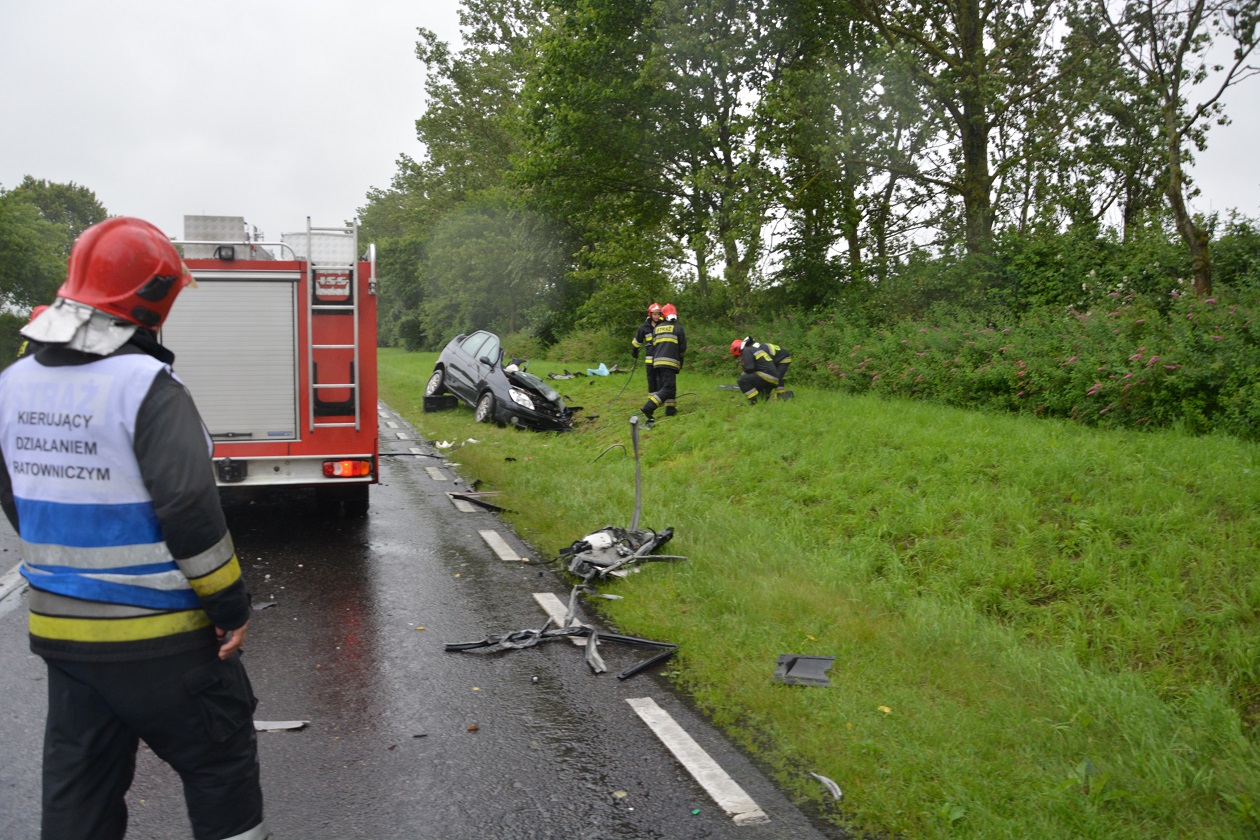 Wskutek zderzenia renault z ciężarówką, a kolejno z citroenem 61-letni kierowca poniósł śmierć na miejscu. Kierujący citroenem, który wpadł na pobocze na obserwację przewieziony został do szpitala, natomiast kierowca tira, który zatrzymał się dopiero na przydrożnym drzewie nie doznał żadnych obrażeń. Kierowcy byli trzeźwi.