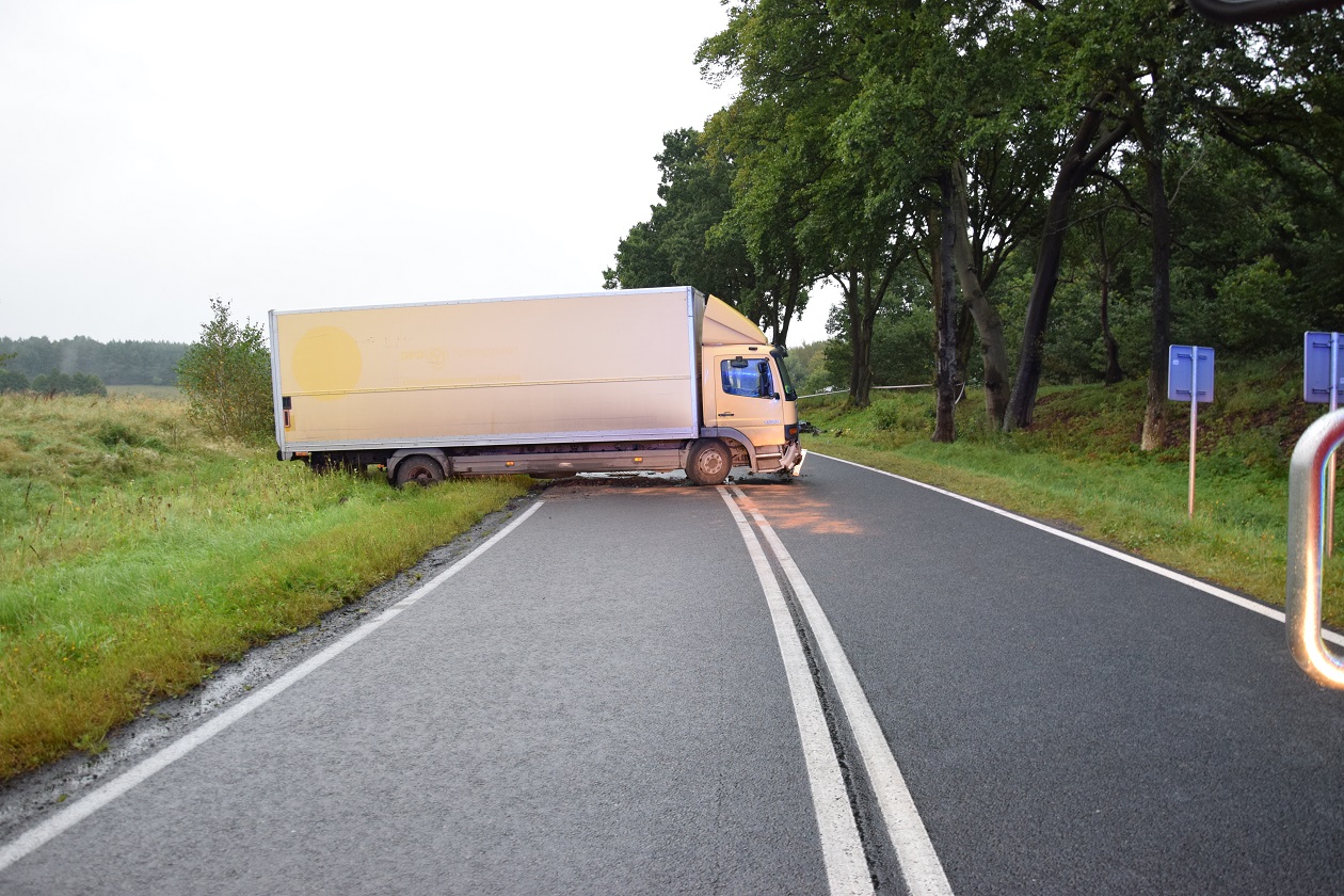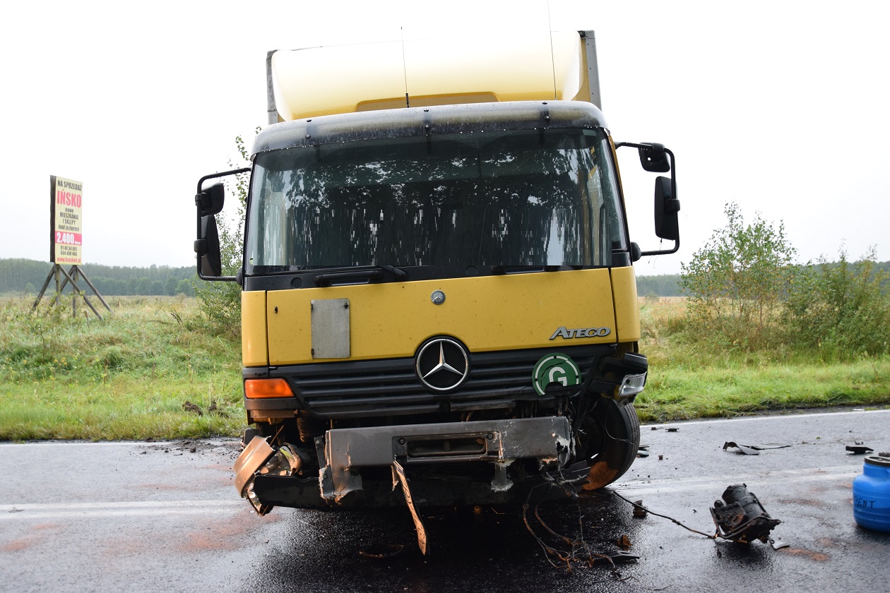 Wczoraj około godziny 18.00 na drodze krajowej nr 20 tuż za miejscowością Chociwel jadąc w stronę Węgorzyna 28-letni kierowca VW Golfa na łuku drogi stracił panowanie nad pojazdem i zjechał na przeciwległy pas ruchu, gdzie czołowo zderzył się z prawidłowo jadącym samochodem ciężarowym marki Mercedes.