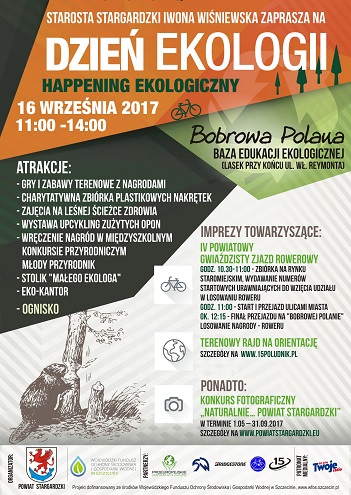Starosta Stargardzki Iwona Wiśniewska zaprasza na coroczny happening z okazji Dnia Ekologii na Bobrowej Polanie. Gry i zabawy terenowe, atrakcje dla najmłodszych, ognisko, IV Powiatowy Gwiaździsty Zjazd Rowerowy i inne imprezy towarzyszące – to wszystko już w sobotę 16 września!