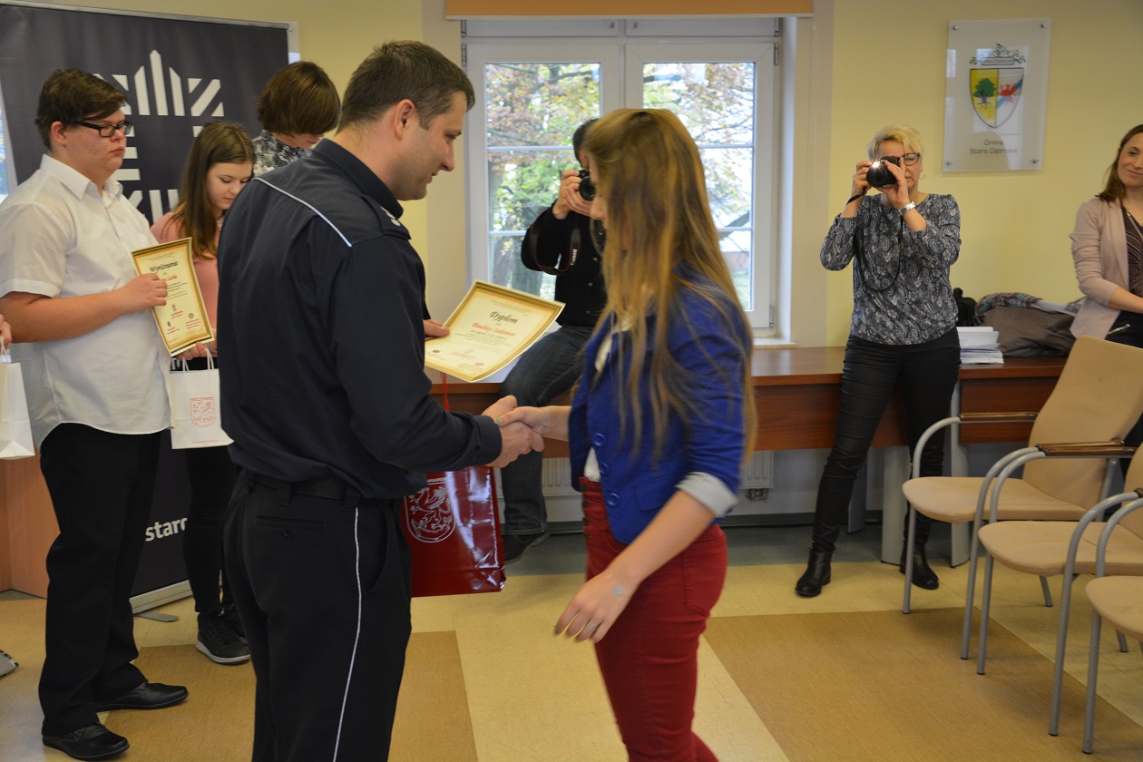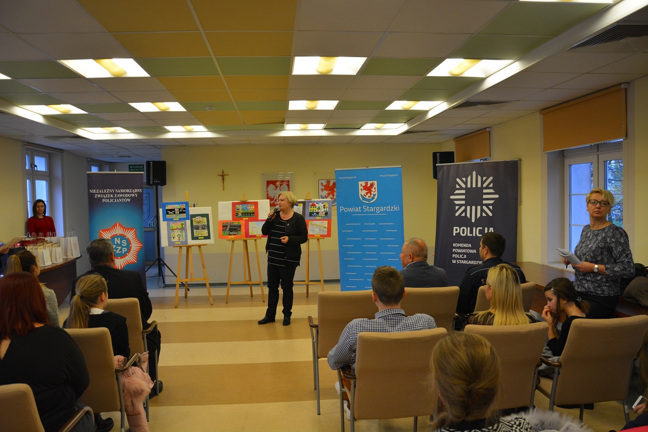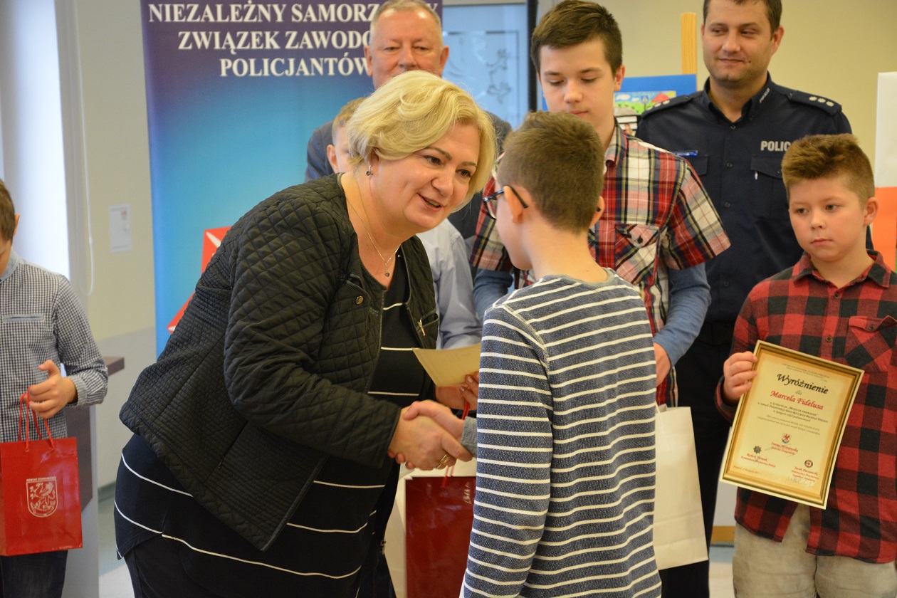 Dzisiaj w siedzibie Starostwa Powiatowego w Stargardzie, gdzie odbyła się uroczystość wręczenia nagród i wyróżnień dla laureatów konkursów: Bezpieczna droga do szkoły 2017 oraz Moda na niepalenie, uczniów oraz ich rodziców, a także nauczycieli przywitała Pani Iwona Wiśniewska Starosta Stargardzki, kom. Artur Grenda I Zastępca Komendanta Powiatowego Policji w Stargardzie oraz Pan Jacek Paczewski Dyrektor Powiatowej Stacji Sanitarno-Epidemiologicznej.