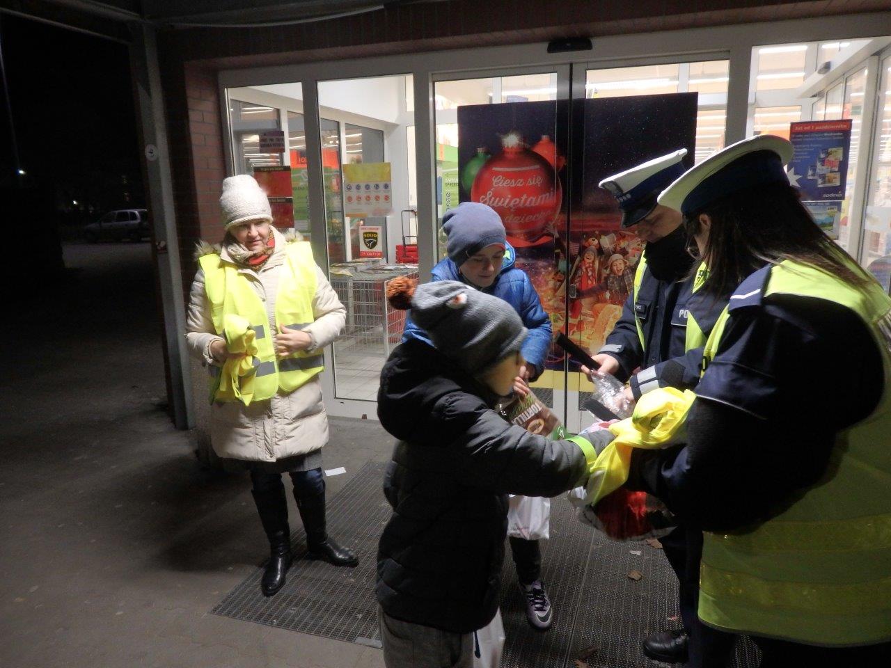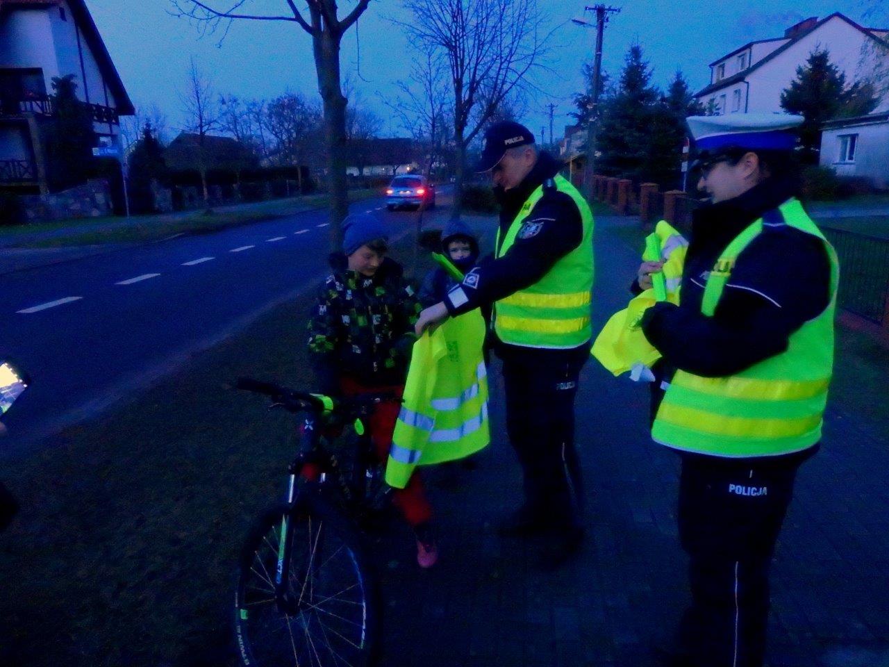 Policjanci z KPP w Stargardzie, przedstawiciele Powiatowej Rady Bezpieczeństwa Ruchu Drogowego z przewodniczącą Panią Ireną Agatą Łucką oraz mundurowi z odwiedzonych miejscowości rozdawali kamizelki, opaski oraz breloczki dzieciom, młodzieży, dorosłym, pieszym i rowerzystom, a także kierowcom, którzy po opuszczeniu auta tez powinni dbać o bycie widocznym.