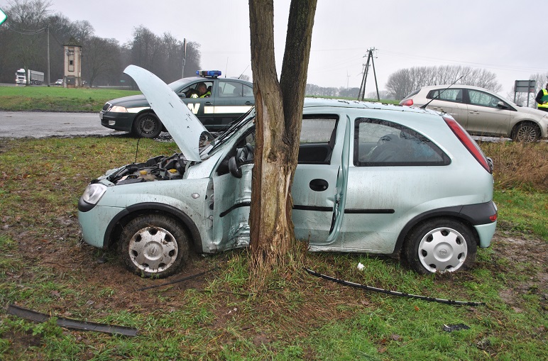 Wczoraj około godziny 11.00 jadąca ze Stargardu w kierunku Krąpiela 60-letnia kobieta z powodu niedostosowania prędkości do panujących warunków na drodze straciła panowanie nad oplem corsą. Najpierw zjechała na przeciwległy pas ruchu, a kolejno na pobocze. Rozpędzony pojazd zatrzymał się dopiero za skrzyżowaniem z drogą na Pęzino, gdzie uderzył w rosnące drzewo.