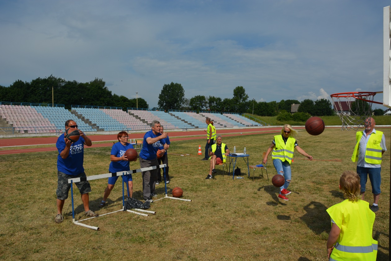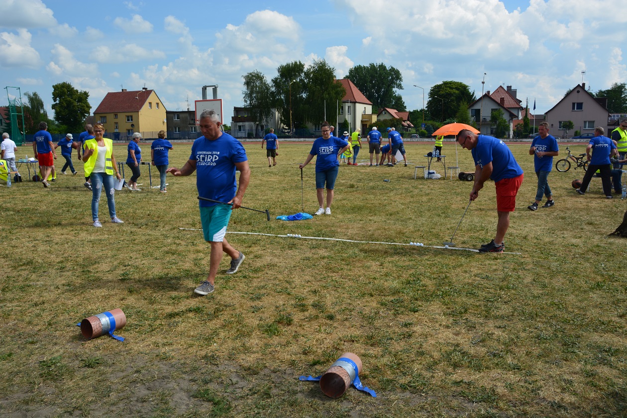 Uczestnicy „ senioriady ” brali udział w sześciu dyscyplinach sportowych takich jak: pokonywanie dystansu na energometrze, układanie puzzli z herbem Stargardu i napisem”Stargard Moim miastem”, narty drużynowe na odległość, rzuty piłką koszykową do kosza, rzut lotką do tarczy, oraz mini golf.
