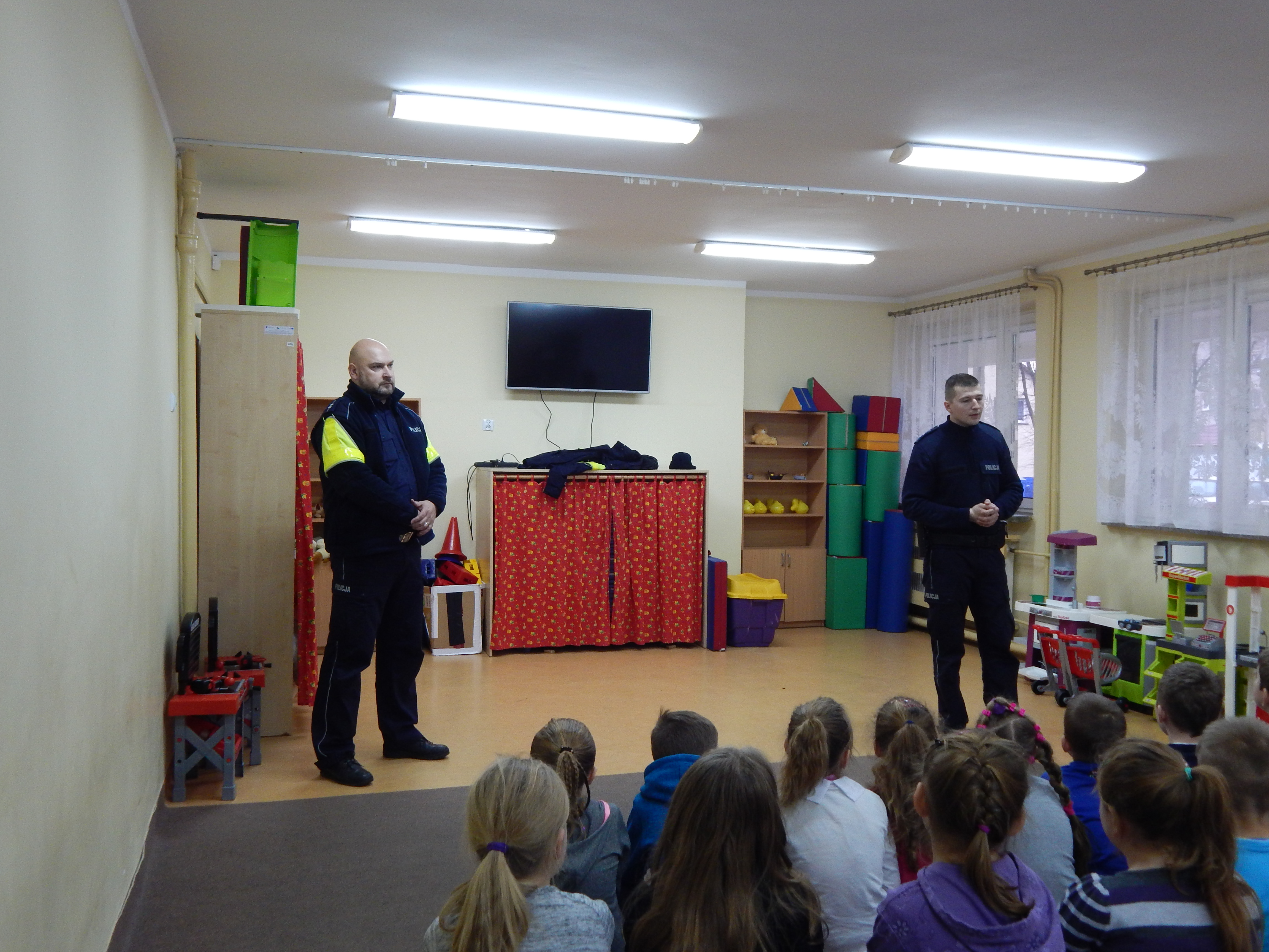 Funkcjonariusze z Posterunku Policji w Dobrzanach wyprzedzając zagrożenia związane z feriami zimowymi udali się do uczniów klas 0-3 Szkoły Podstawowej. Tam oprócz zimowych zagrożeń poruszono między innymi tematy dotyczące osoby „nieznajomej”, a także kontaktu z niebezpiecznym psem.