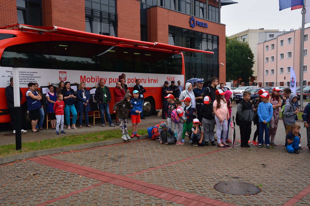 Podczas dzisiejszej akcji 35 osób oddało krew. Łącznie zebrano prawie 16 litrów tego cennego lekarstwa. Dzisiejsze działania cieszyły się dużym zainteresowaniem wśród najmłodszych, dzieci z kolonii oraz półkolonii które wraz ze swoimi opiekunami przybyli na teren komendy. Wszyscy otrzymali z rąk policjantów upominki związane z bezpieczeństwem w ruchu drogowym. Podczas codziennej służby funkcjonariusze stargardzkiej drogówki, dzielnicowi oraz pracownicy cywilni promują zasady bezpieczeństwa w ruchu drogowym wśród najmłodszych a także wśród osób starszych. Mając na uwadze ruch jaki odbywa się na ulicach czy też drogach wychodzimy z założenia że o bezpieczeństwie nigdy za wiele bez względu na wiek.