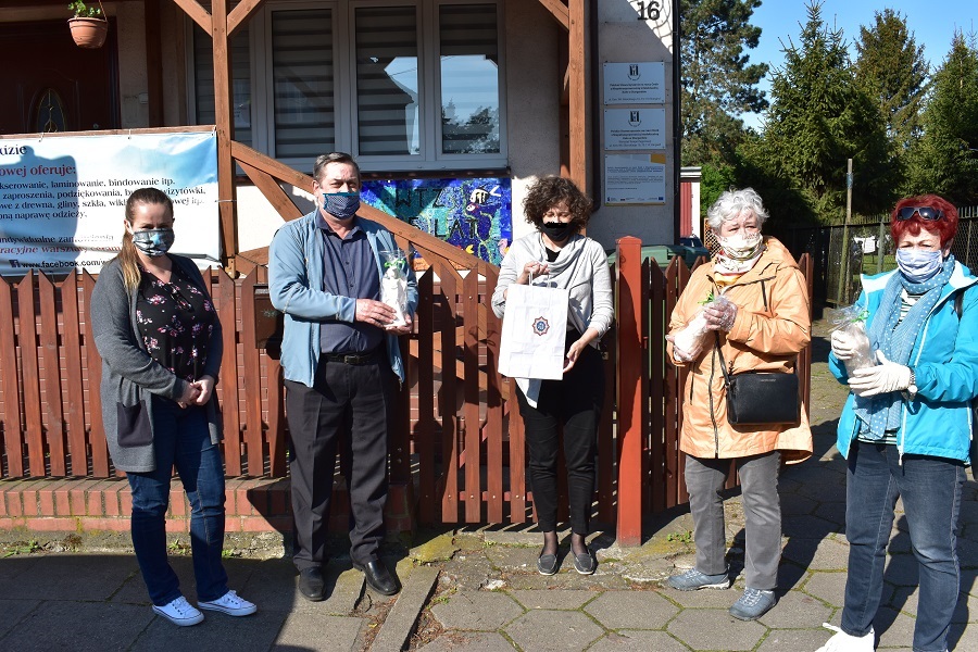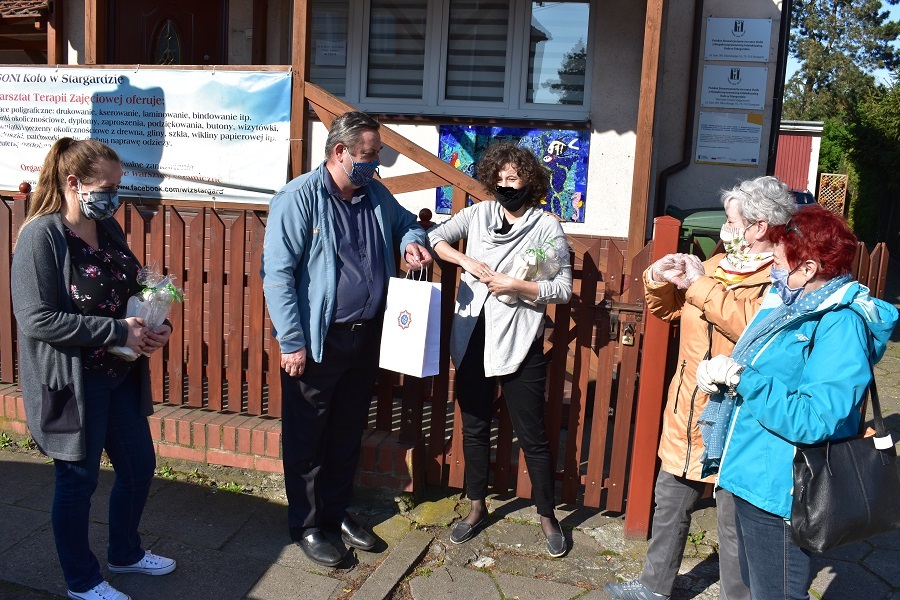 Dzisiaj na ręce Pani Dyrektor Edyty Lew - Lapczyk Polskiego Stowarzyszenia na Rzecz Osób z Upośledzeniem Intelektualnym Koło w Stargardzie Przewodniczący Zarządu Terenowego NSZZP Jan Podolak, który ufundował materiał wraz z przedstawicielami emerytów policyjnych Panią Ewą Wasylewicz, oraz Danutą Krychowską przekazali uszyte przez siebie maseczki, które otrzymają podopieczni stowarzyszenia.