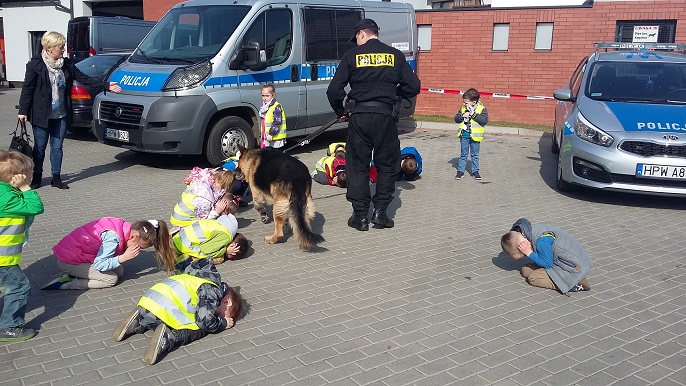Jednak najwięcej emocji przysporzyły wykłady z przewodnikami psów służbowych, a wszystko za sprawą przeprowadzonych ćwiczeń i instruktarzu jak zachować się w przypadku ataku agresywnych zwierząt. Dzieci nie tylko zapoznały się z charakterem służby czworonogów i zasadami ich rekrutacji, ale miał również możliwość uczestniczenia w pokazie, dzięki któremu zapamiętały wiele cennych wskazówek.