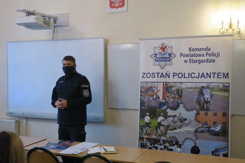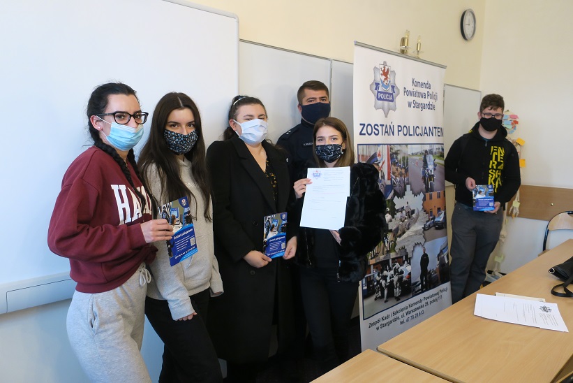 Każdy młody człowiek, dokonując wyboru swojej drogi zawodowej, powinien przekonać się o tym, jak pasjonująca może być służba w Policji. Mówimy o swojej służbie i przekazujemy wiedzę podczas spotkań z uczniami szkół średnich w trakcie których zachęcamy do wstąpienia w nasze szeregi. Jedno z takich spotkań odbyło się w minionym tygodniu w Zespole Szkół Prywatnych Nr 1 w Stargardzie.