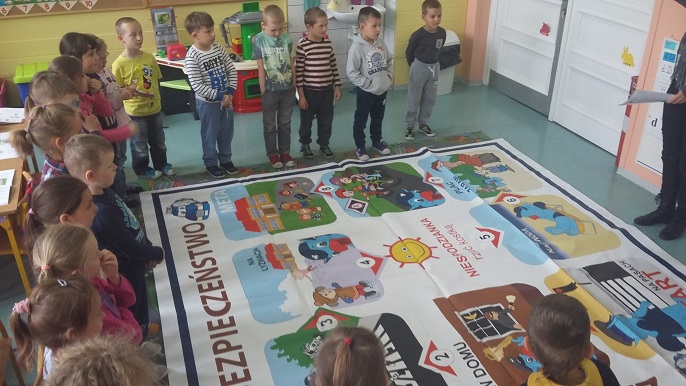 Przedstawiciele Stargardzkiej Komendy prowadząc szereg działań profilaktycznych, oprócz wskazówek, jakie przekazują maluchom z przedszkola i szkoły grają z nimi również w bezpieczeństwo. Połączenie działań wspólnie z przedstawicielem Powiatowej Stacji Sanitarno – Epidemiologicznej sprawia, że dzieci szybciej zapamiętują poprawne zachowania, mające uchronić je przed najróżniejszymi zagrożeniami.