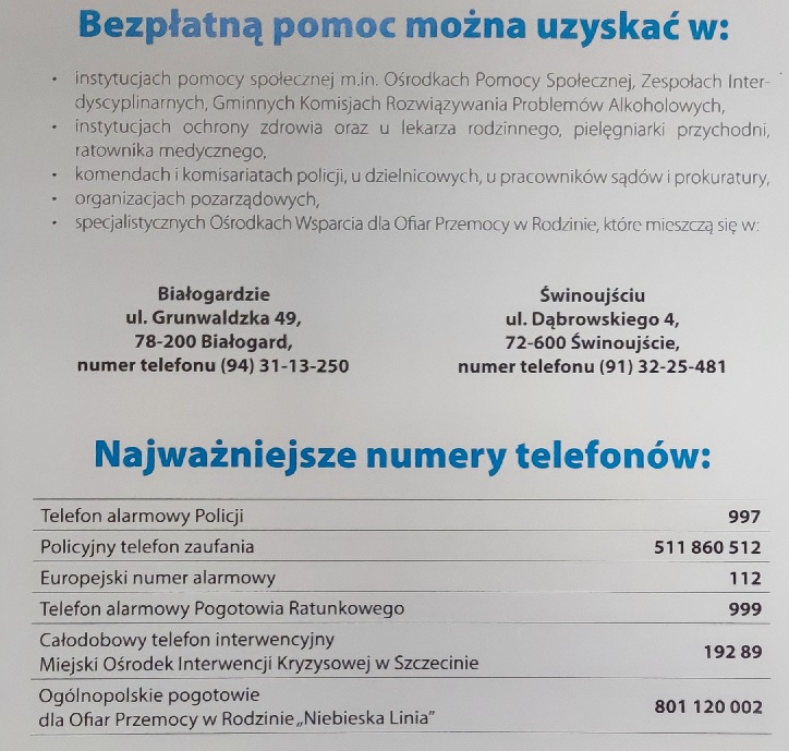 Reagujmy na przemoc, nie stójmy bezczynnie gdy komuś obok dzieje się krzywda. Zgłaszajmy przestępstwa, nawet gdy nie jesteśmy pewni swojej oceny sytuacji i interpretacji faktów - to zrobi przygotowany do tego policjant. Pozbądźmy się oporu przed informowaniem policji o czyjejś krzywdzie, być może od naszego zachowania zależy czyjeś zdrowie lub nawet życie.