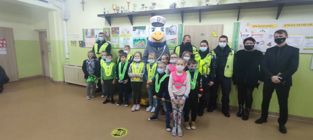 Ważnym elementem profilaktyki w zakresie poprawy bezpieczeństwa w ruchu drogowym jest uświadamianie już od najmłodszych lat w jaki sposób powinniśmy się zachowywać i co robić, aby być bezpiecznym. Dzisiejsze spotkanie, w którym udział wzięli Pan Łukasz Wilkosz Wicestarosta Stargardzki, Pani Irena Agata Łucka Członek Zarządu Powiatu, Pan Marek Ciarkowski Dyrektor Wydziału Zarządzania Kryzysowego, stargardzcy funkcjonariusze, na czele z komisarzem „Inkiem” poświęcone było bezpieczeństwu najmłodszych uczestników ruchu drogowego podczas ich codziennej drogi do i ze szkoły.