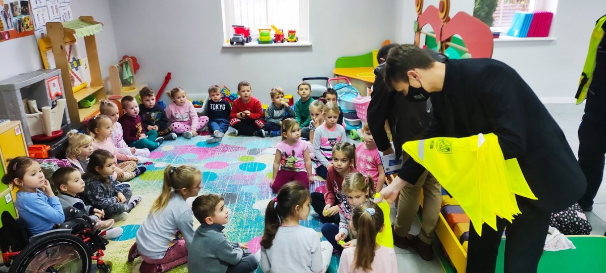 Na koniec spotkania oprócz wspólnych zdjęć oraz prezentów w postaci odblasków dzieci chętnie przybijały „piątkę” komisarzowi „Inkowi”, który dla najmłodszych był najważniejszą postacią spotkania.