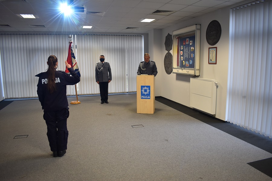 Dzisiaj w sali konferencyjnej stargardzkiej policji odbyło się uroczyste ślubowanie wstępującej w nasze szeregi nowo przyjętej policjantki. Dzisiejszy dzień był dla niej początkiem niezwykłej policyjnej misji, podczas której nawet z narażeniem życia poświęcać się będzie społeczeństwu.