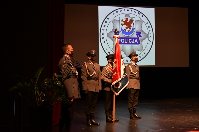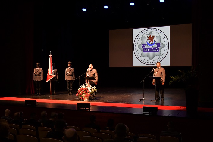Uroczystą zbiórkę rozpoczął meldunek złożony Komendantowi Wojewódzkiemu Policji przez dowódcę uroczystości podinsp. Michała Jaskulskiego oraz wprowadzenie pocztu sztandarowego ze sztandarem Komendy Powiatowej Policji w Stargardzie. Podczas ceremonii insp. Robert Nowak pożegnał się ze sztandarem jednostki i złożył meldunek Komendantowi Wojewódzkiemu Policji o zdaniu obowiązków służbowych. Komendant Wojewódzki Policji nadinsp. Tomasz Trawiński podziękował komendantowi stargardzkiej jednostki za profesjonalizm i realizowanie zadań na bardzo wysokim poziomie. Dla ustępującego komendanta była to szczególna chwila, gdyż po blisko 31 latach służby pożegnał się z mundurem przechodząc na zasłużoną emeryturę.
