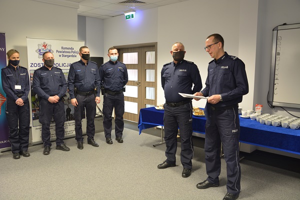 Szef stargardzkich funkcjonariuszy podczas pożegnania dziękował swojemu zastępcy za współpracę, a także pomoc w realizacji zadań. Życząc powodzenia na nowym etapie kariery zawodowej życzył spokoju, sukcesów zawodowych oraz w życiu prywatnym, wytrwałości, a przede wszystkim dużo zdrowia. Do życzeń przyłączyli się również policjanci oraz pracownicy stargardzkiej Policji.