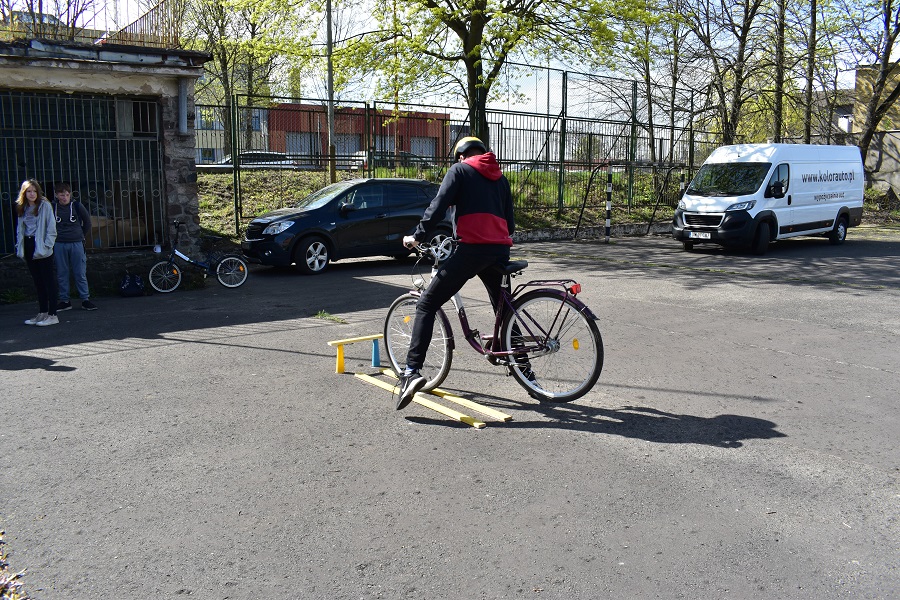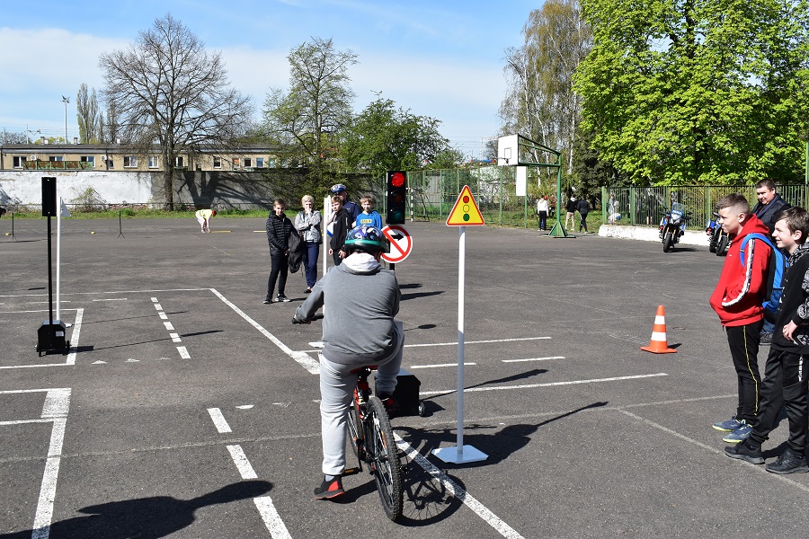 Zawodnicy dzisiejszych eliminacji podzieleni zostali na II grupy. Grupa I to uczniowie klas 4-6, grupa druga to starsi koledzy z klas 7-8. Wszyscy zmagali się z trzema konkurencjami. Pierwszym zadaniem był test z zakresu przepisów ruchu drogowego. W drugim zadaniu rowerzyści musieli wykazać się praktycznymi umiejętnościami poruszania się po drodze. Natomiast w trzeciej konkurencji na rowerowym torze przeszkód wykazywali się umiejętnościami technicznej jazdy rowerem. Konkurencje praktyczne rozgrywane były na terenie boiska przy budynku starostwa.