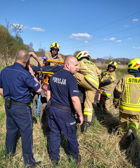 Na miejsce natychmiast wezwano ratowników medycznych oraz strażaków, którzy za pomocą quada przetransportowali stargardzianina w miejsce, gdzie został przekazany załodze karetki, a następnie przetransportowany do szpitala.