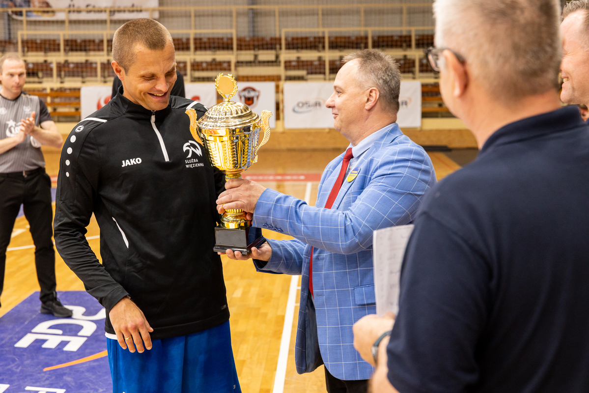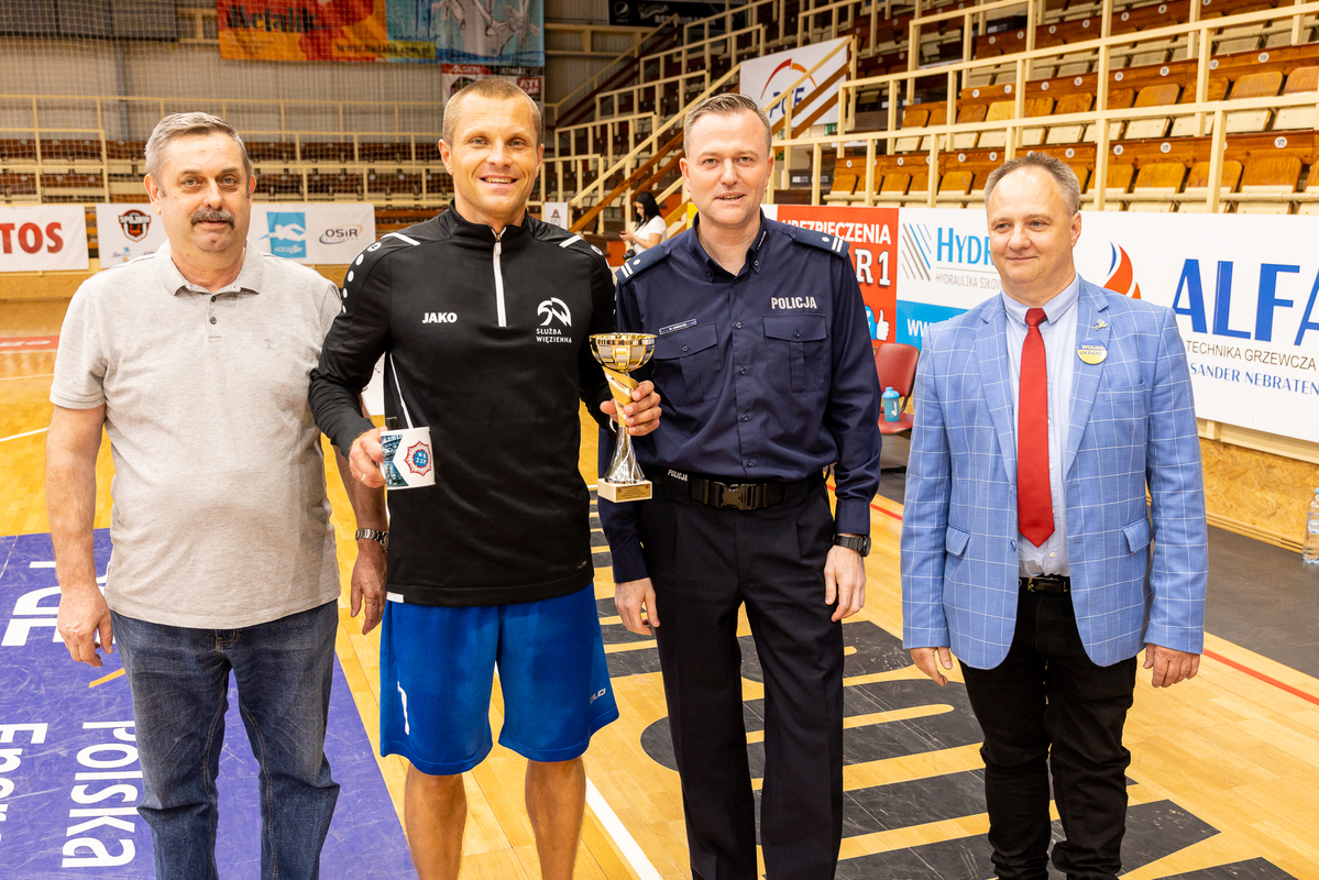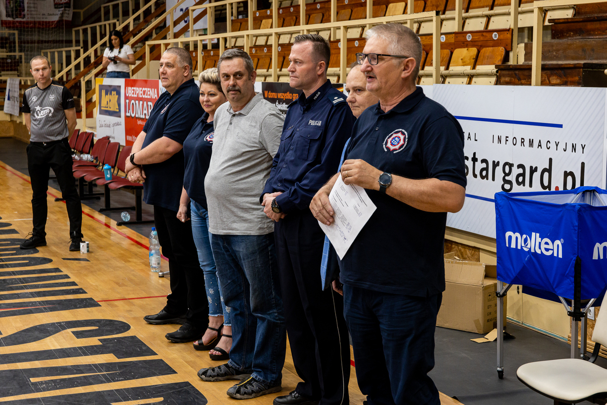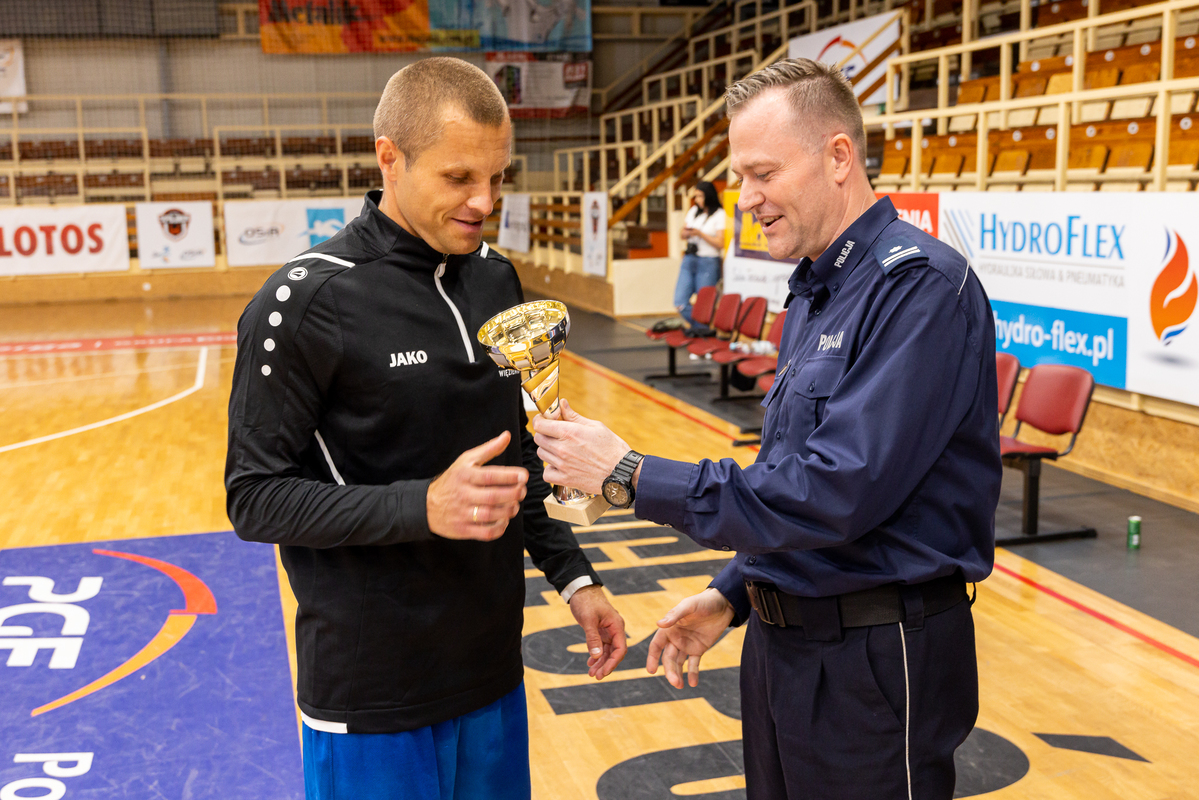 I Zastępca Komendanta Powiatowego Policji w Stargardzie podinsp. Michał Jaskulski wręczając puchary podziękował zawodnikom za zaangażowanie i waleczność podczas turnieju, które pozwoliły wszystkim uczestnikom świetnie się bawić podczas rozegranych meczów. Złożył również podziękowania dla Pana Prezydenta Stargardu za objęcie Turnieju Honorowym Patronem oraz Zarządu Wojewódzkiego NSZZ Policjantów Województwa Zachodniopomorskiego za zakup nagród dla uczestników turnieju.