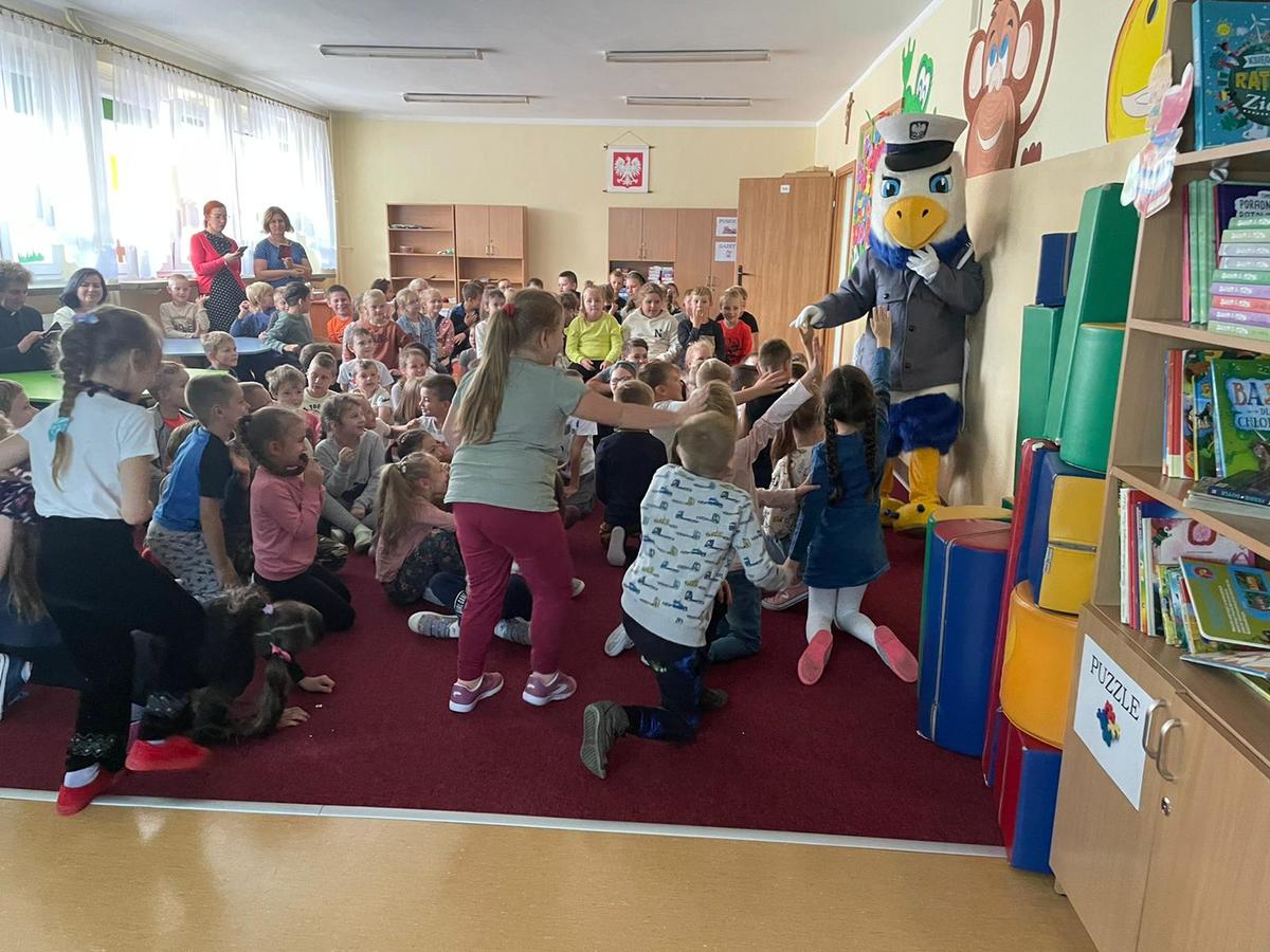 Dzieci biorące udział w spotkaniu z radością przyjęły policjantów wraz z komisarzem Inkiem, który wśród dzieci wywoływał uśmiech i zadowolenie. Przedszkolaki bardzo uważnie słuchały i chętnie zadawały pytania. Po przeprowadzonej prelekcji oraz odpowiedziach na pytania najmłodszych przyszedł czas na przytulanie się do „INKA”.