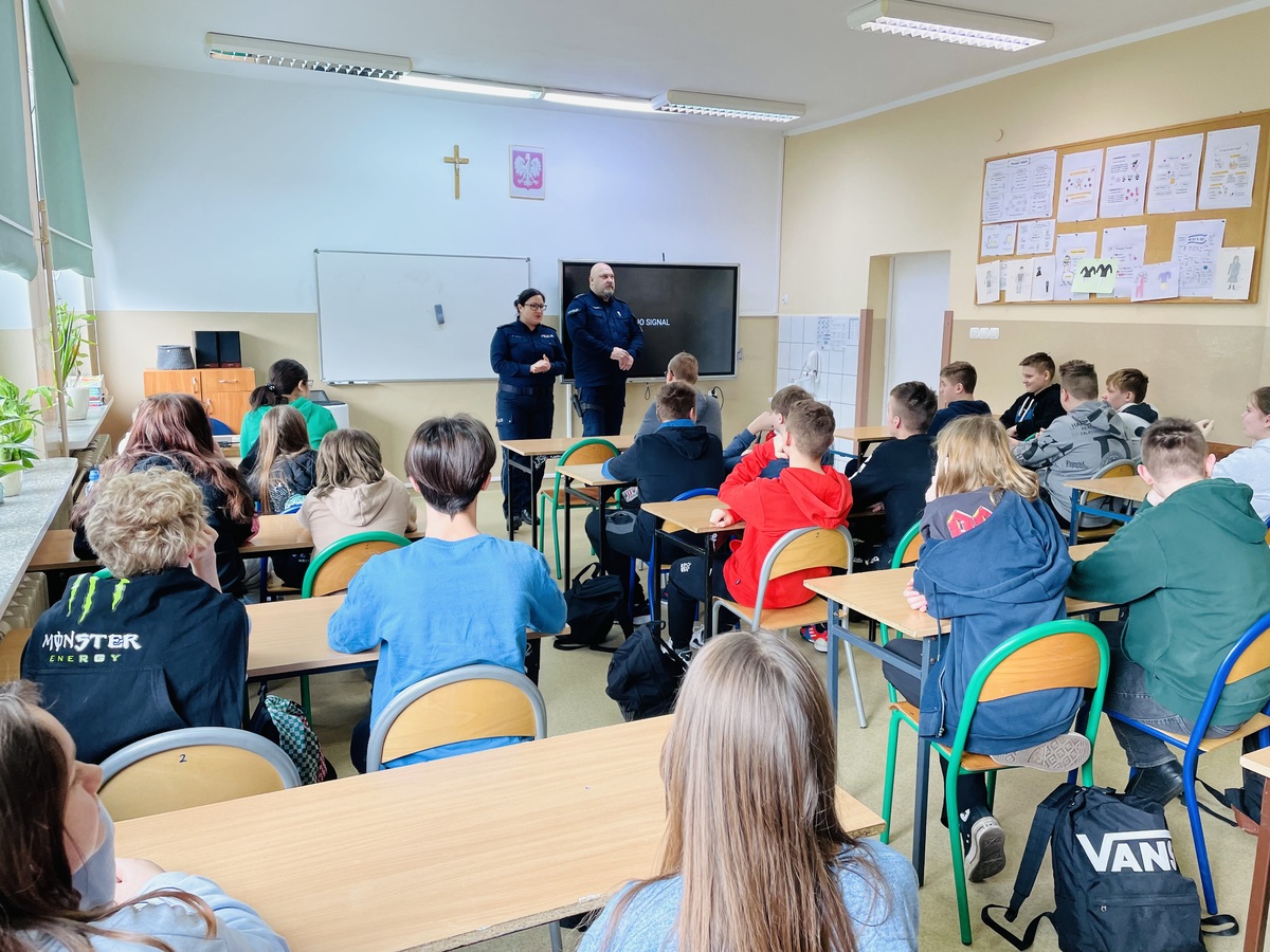 W trakcie zajęć przekazano uczniom również wiedzę na temat tego, kogo nazywamy nieletnim, czy nieletni oznacza to samo, co małoletni oraz co znaczy być odpowiedzialnym w świetle prawa. Ponadto szeroko omówiono pojęcie demoralizacji, czynu zabronionego oraz przedstawiono środki wychowawcze i poprawcze, które Policja czy sąd rodzinny może zastosować wobec osoby nieletniej.