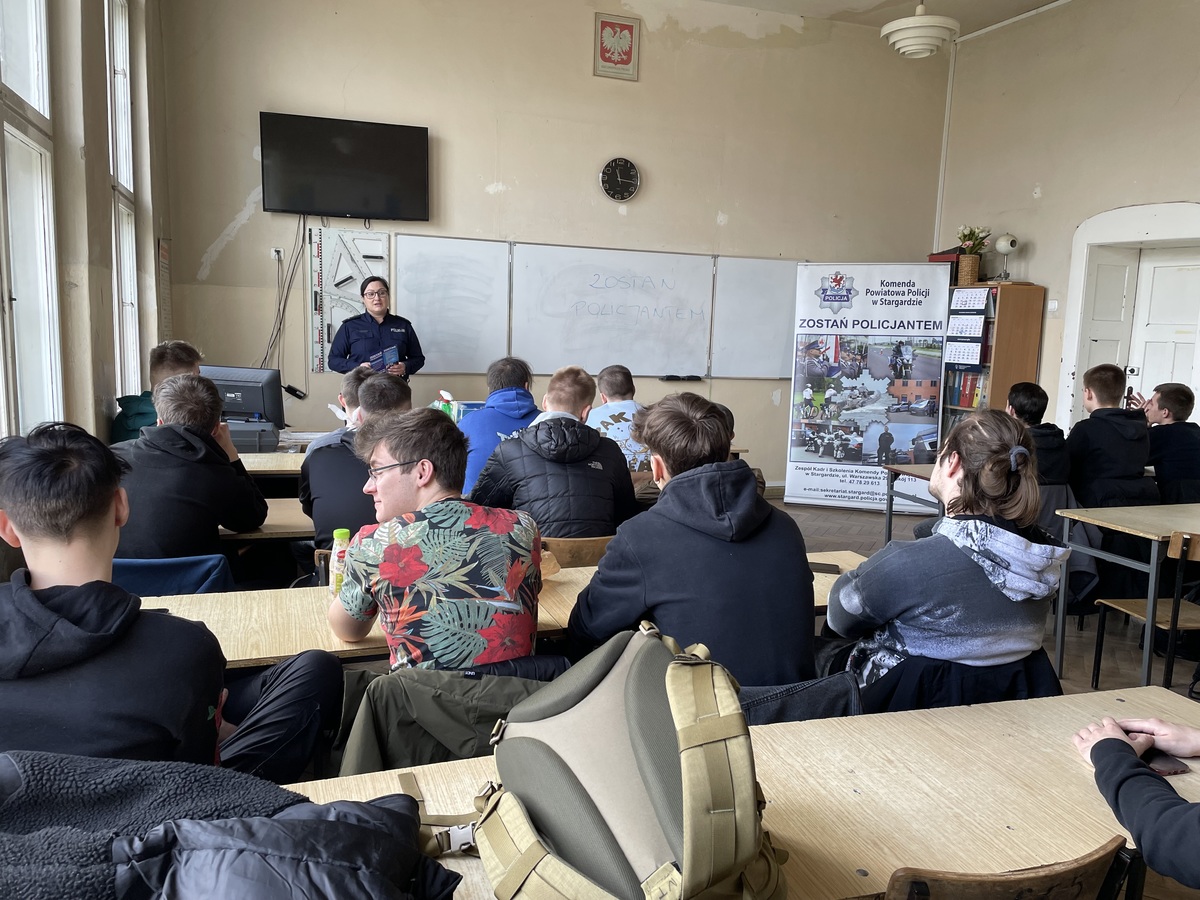 Wczoraj policjanci z Komendy Powiatowej Policji w Stargardzie przeprowadzili spotkania z uczniami klas maturalnych Zespołu Szkół nr 1 w Stargardzie. Tematem przewodnim była promocja zawodu policjanta. Funkcjonariusze przekazywali uczniom informację na temat służby w Policji, a także omówili wszelkie tematy związane z procesem rekrutacji.