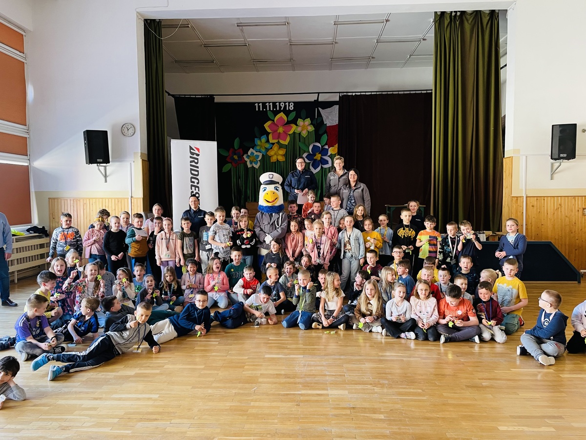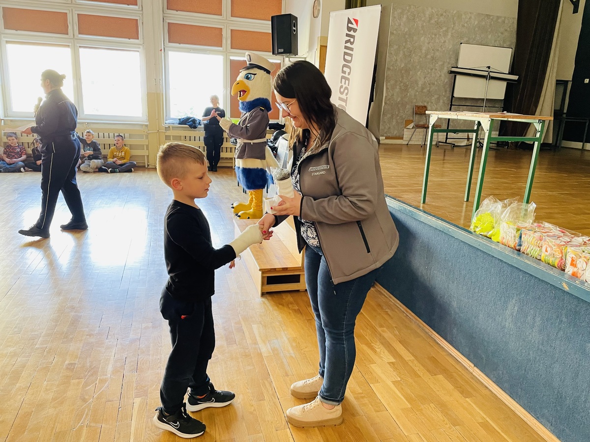 Stargardzcy policjanci wspólnie z przedstawicielami firmy Bridgestone odwiedzili uczniów ze szkoły Podstawowej nr 11 w Stargardzie. Spotkanie miało na celu celu kreowanie pozytywnego wizerunku policjanta, a także edukacji w zakresie szeroko pojętego bezpieczeństwa. Policjantom towarzyszył kom. „INEK”.