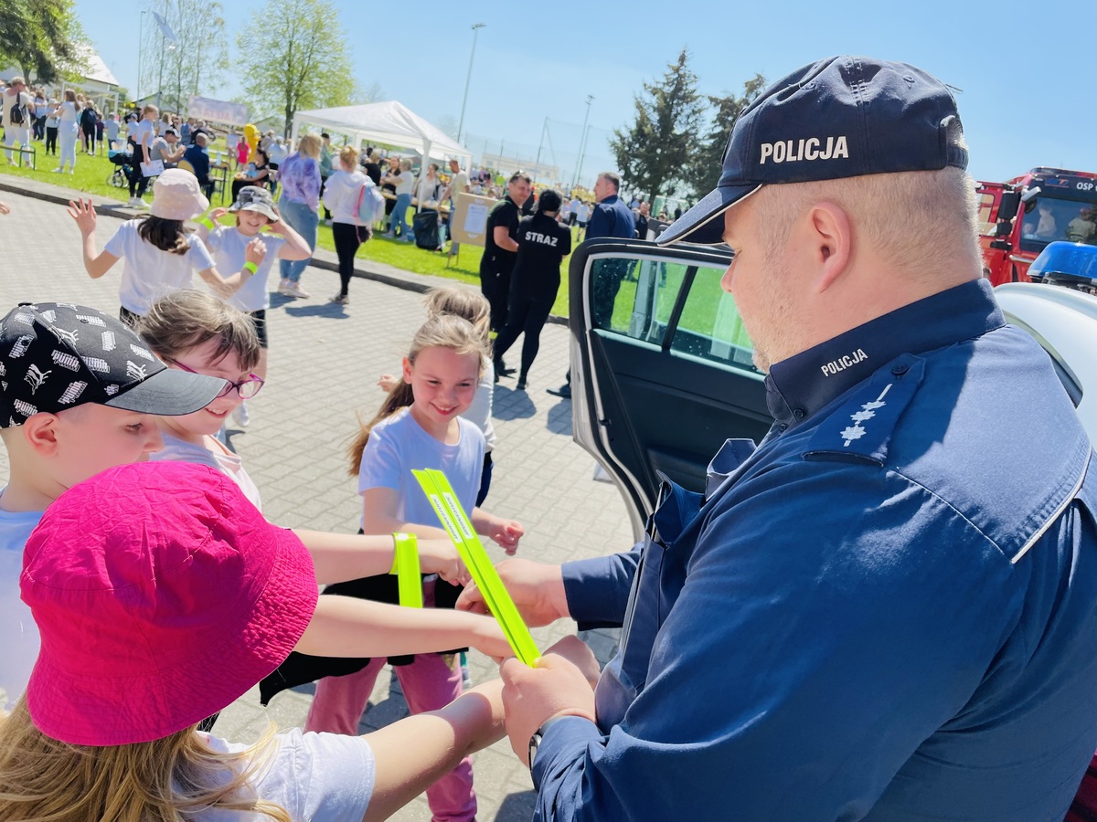 Ważnym elementem spotkania było również przypomnienie o przestrzeganiu zasad poruszania się po drodze, szczególnie po zmroku, kiedy niezbędne stają się elementy odblaskowe. W ten sposób stróże prawa starają się uświadomić dzieci i młodzież, że przestrzeganie określonych reguł i zachowanie zdrowego rozsądku w trakcie dni wolnych od szkoły pozwoli ograniczyć ryzyko przykrych niespodzianek. Przez cały czas trwania festynu każdy uczestnik mógł poczuć się, jak prawdziwy policjant wsiadając do radiowozu, przymierzając czapkę policjanta czy też po prostu robiąc sobie zdjęcie z policjantem.
