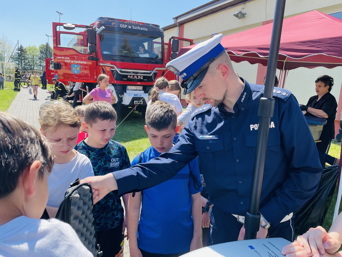 Funkcjonariusze z Komendy Powiatowej Policji w Stargardzie przeprowadzili działania profilaktyczne podczas organizowanych na terenie Szkoły Podstawowej w Suchaniu Dni Olimpijczyka. Stróże prawa przygotowali dla mieszkańców, szczególnie tych najmłodszych, liczne atrakcje i przybliżyli charakter swojej służby. Policjanci promowali także swój zawód, zachęcając młode osoby do wstąpienia w szeregi Policji.