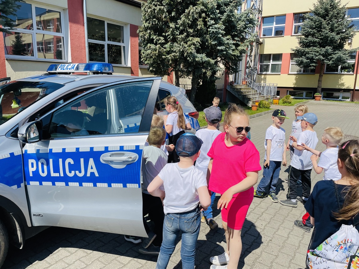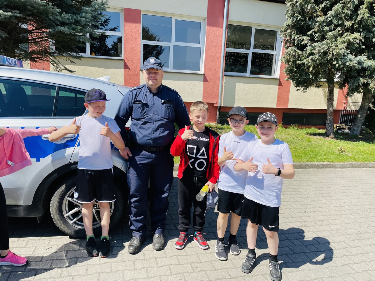 Pogoda dopisała, a wszystkie dzieci otrzymały elementy odblaskowe. Funkcjonariusze przekazywali także informacje oraz broszury związane z doborem do służby.