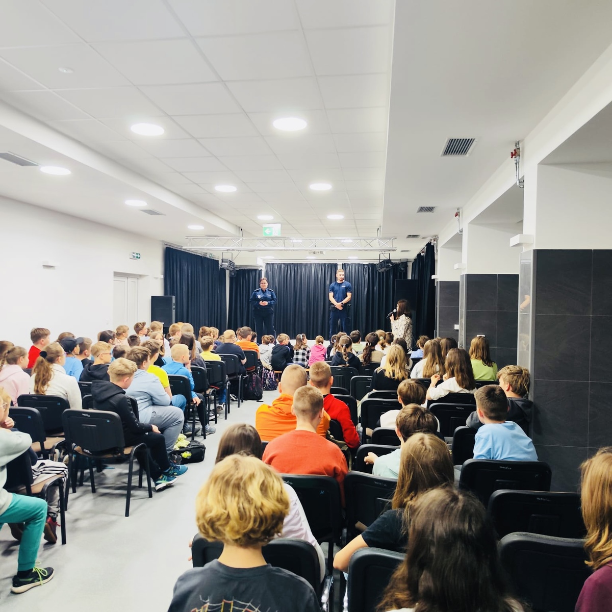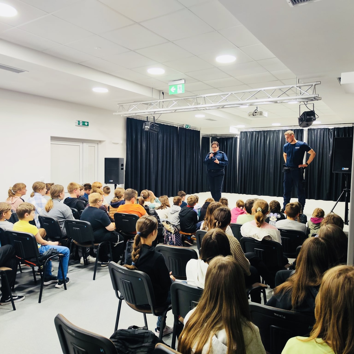 Niejednokrotnie młodzi ludzie popełniają czyny karalne nie mając świadomości, że zdarzenia, w których biorą udział noszą znamiona przestępstwa lub wykroczenia. Nie zdają sobie sprawy z konsekwencji prawnych, w przypadku popełnienia czynu karalnego. Spotkanie z uczniami było okazją, aby porozmawiać na tematy związane z odpowiedzialnością prawną osób nieletnich i uświadomić młodym ludziom, jak łatwo popaść w konflikt z prawem. Policjanci przypomnieli młodzieży, jakie mają obowiązki i prawa. Tłumaczyli, jak zachować się w sytuacjach niebezpiecznych, w których zagrożone jest życie i zdrowie ludzkie oraz, gdzie szukać pomocy. Policjanci zwrócili uwagę na problem demoralizacji. Uczulali młodzież na konsekwencje spożywania alkoholu, narkotyków. Przypominali, że sięganie po tego typu nielegalne środki wiąże się nie tylko z konsekwencjami prawnymi, ale i poważnym ryzykiem dla zdrowia i życia. Niebezpieczeństwo ich zażywania wynika z faktu, że nigdy nie wiadomo, jak ludzki organizm zachowa się po zażyciu nawet najmniejszej dawki takiej substancji chemicznej. Podczas spotkania policjanci omówili rodzaje narkotyków, objawy ich zażywania. Opowiedzieli, jakie są procedury postępowania w przypadku ujawnienia u ucznia substancji, która w konsekwencji może okazać się narkotykiem lub dopalaczem.