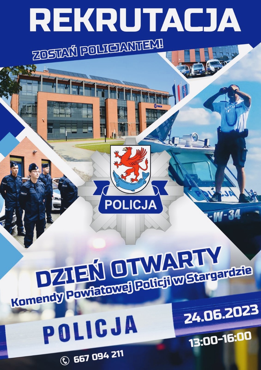 W najbliższą sobotę tj. 24 czerwca 2023 roku w godzinach 13:00- 16:00 zapraszamy wszystkich zainteresowanych pełnieniem służby w Policji do Komendy Powiatowej Policji w Stargardzie, gdzie na specjalnie przygotowanym stoisku osoby zainteresowane służbą z pewnością znajda coś dla siebie.