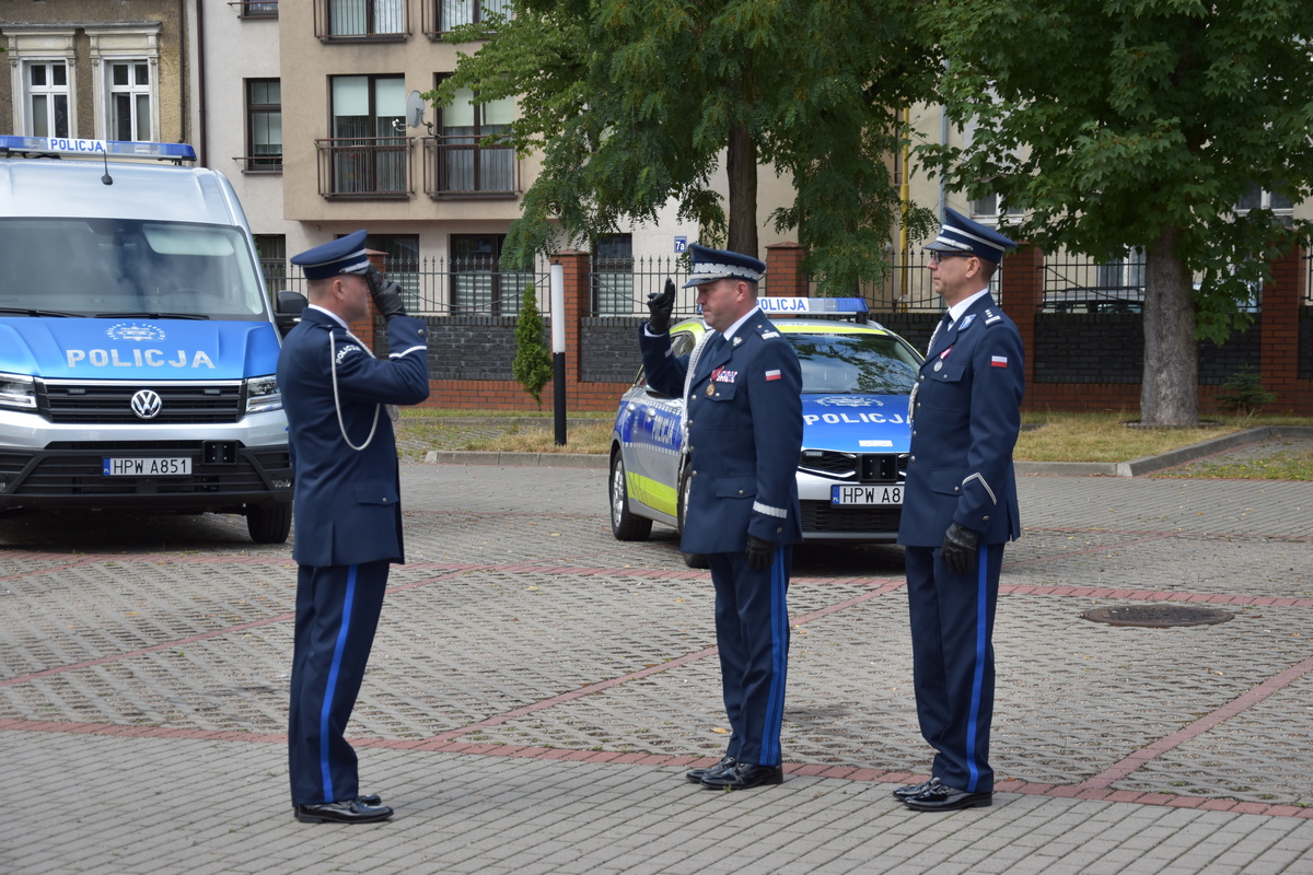 Uroczystą zbiórkę rozpoczął dowódca uroczystości mł. insp. Michał Jaskulski I Zastępca Komendanta Powiatowego Policji w Stargardzie składając meldunek Komendantowi Wojewódzkiemu Policji w Szczecinie Panu nadinsp. Tomaszowi Trawińskiemu.