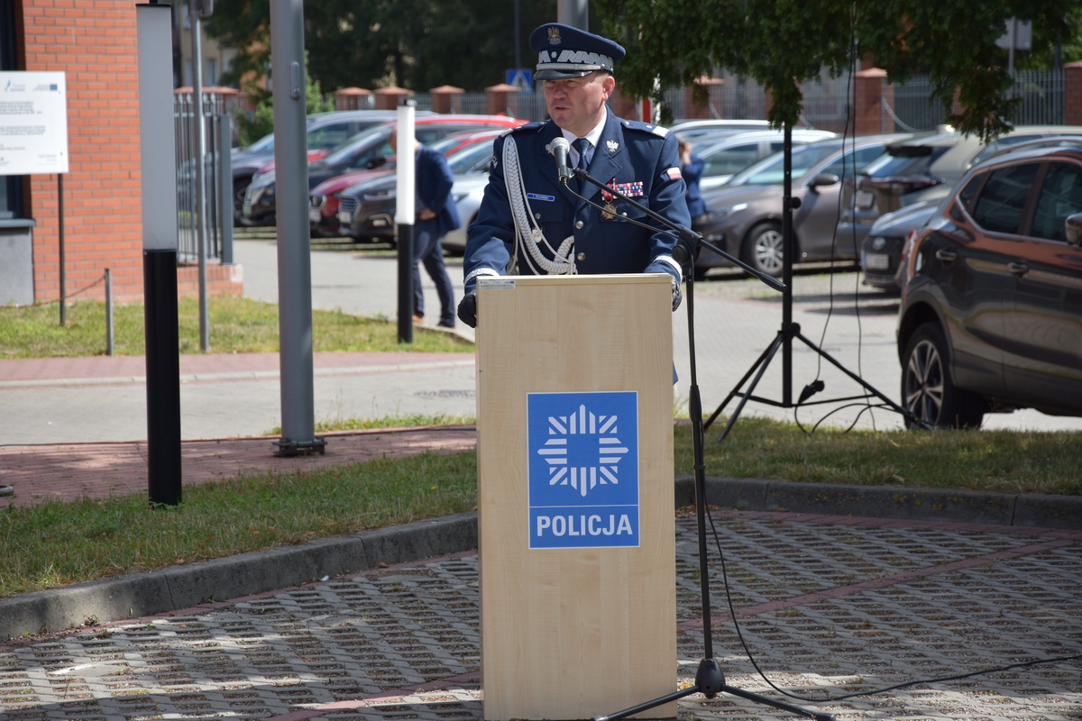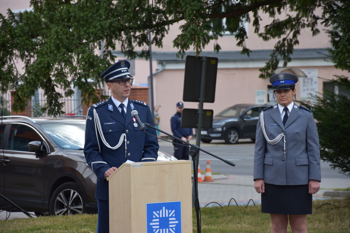 W dalszej części gospodarz uroczystości Komendant Powiatowy Policji w Stargardzie powitał przybyłych na dzisiejsze święto zaproszonych gości, policjantki, policjantów, pracowników Policji oraz ich najbliższych i rodziny.