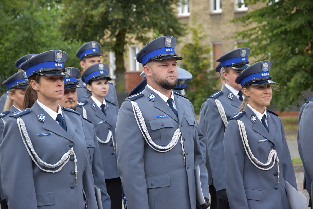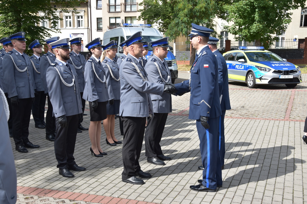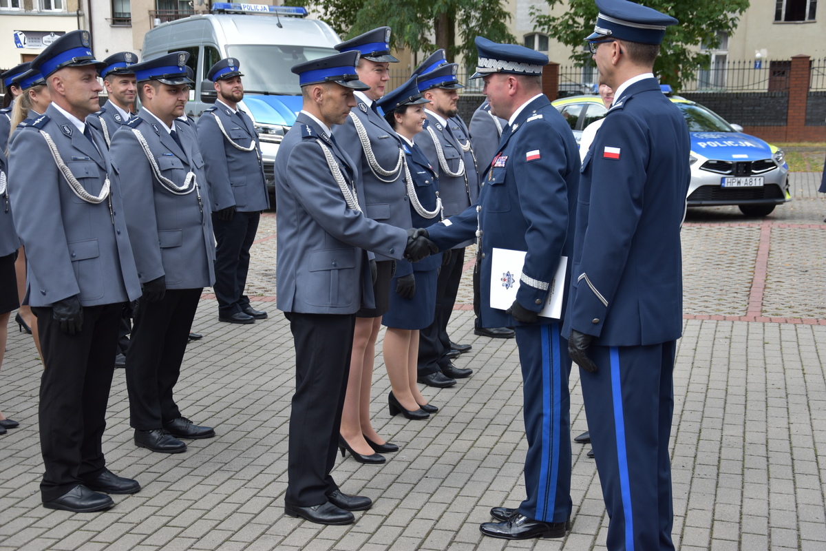 W dalszej części uroczystej zbiórki nastąpiło wręczenie wyróżnień oraz aktów mianowania na kolejne stopnie służbowe. Dzisiaj podczas naszego święta awans na wyższe stopnie odebrało 42 policjantów naszej jednostki. W korpusie aspirantów 16 funkcjonariuszy, w korpusie podoficerów 26 policjantów. Minister Spraw Wewnętrznych i Administracji za wzorowe wykonywanie obowiązków służbowych wyróżnił troje policjantów Komendy Powiatowej Policji w Stargardzie. Złotą odznaką zasłużonego policjanta- insp. Sławomira Bobera Komendanta Powiatowego Policji w Stargardzie, brązową odznaką zasłużony policjant- mł. insp. Michała Jaskulskiego I Zastępca Komendanta Powiatowego Policji w Stargardzie, brązową odznaką zasłużony policjant- asp. Magdalenę Osmańską- Detektywa Wydziału Dochodzeniowo- Śledczego. W korpusie oficerów stopień nadkom. Policji otrzymał kom. Łukasz Tyczkowski. Odznaczenia oraz akt mianowania wręczono na Wojewódzkich Obchodach Święta Policji, które odbyły się w Pyrzycach.