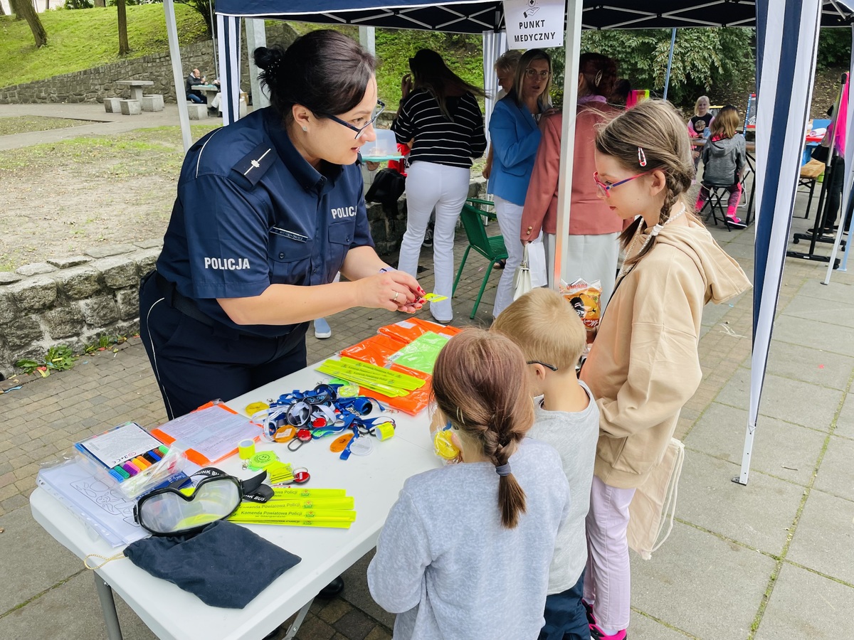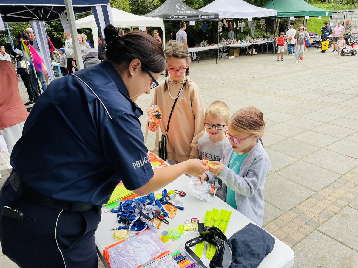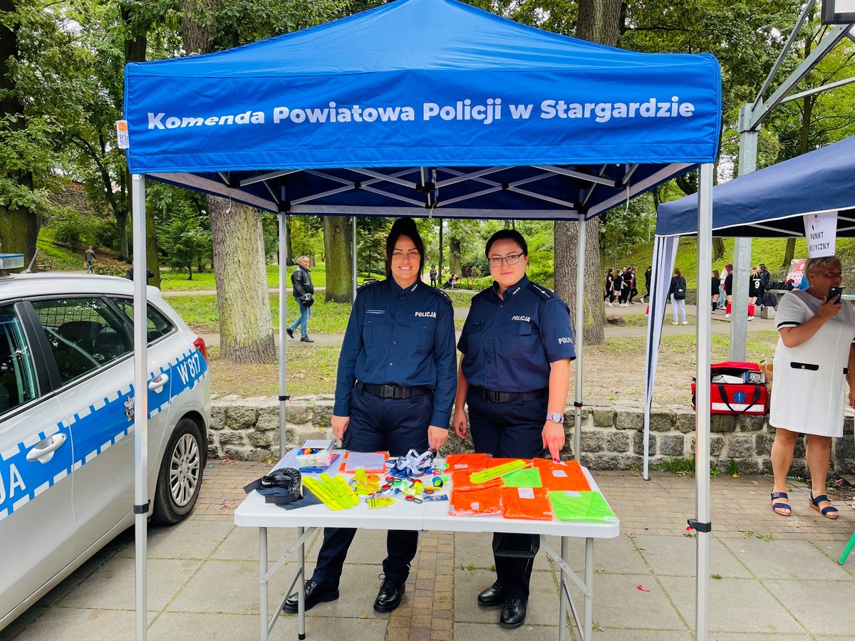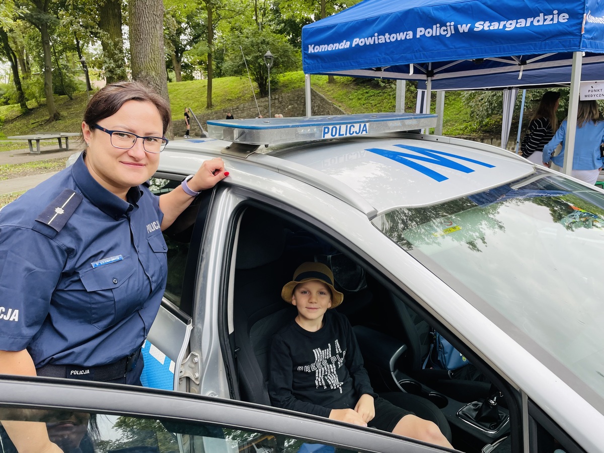 Stargardzcy policjanci wzięli udział w festynie organizowanym przez stowarzyszenie Misja Dobra Nowina, który odbył się w minioną niedzielę w parku Chrobrego. Podczas festynu zorganizowana została zbiórka pieniędzy na leczenie specjalistyczne dla dzieci. Wszystkie osoby, które przyszły wesprzeć zbiórkę pieniędzy mogły liczyć na mnóstwo atrakcji. Podczas festynu mundurowi opowiadali o zawodzie policjanta, wdrażając najmłodszych w tajniki służby. Była to również okazja do rozmów z mieszkańcami naszego miasta na tematy związane z bezpieczeństwem w rożnych codziennych sytuacjach. Zarówno dzieci, jak i dorośli mieli okazję zasiąść za kierownicą policyjnego radiowozu i zapoznać się z jego wyposażeniem. Z uwagi na rozpoczynający się rok szkolny mundurowi rozmawiali z dziećmi i młodzieżą na temat ,,Bezpiecznej drogi do szkoły’’. Najmłodsi oprócz wskazówek i materiałów profilaktycznych otrzymali elementy odblaskowe. Każdy zainteresowany miał możliwość sprawdzić, jak wygląda świat przez alkogogle.