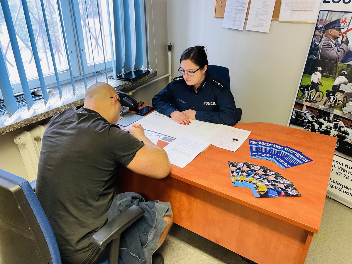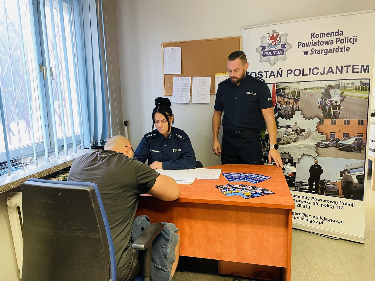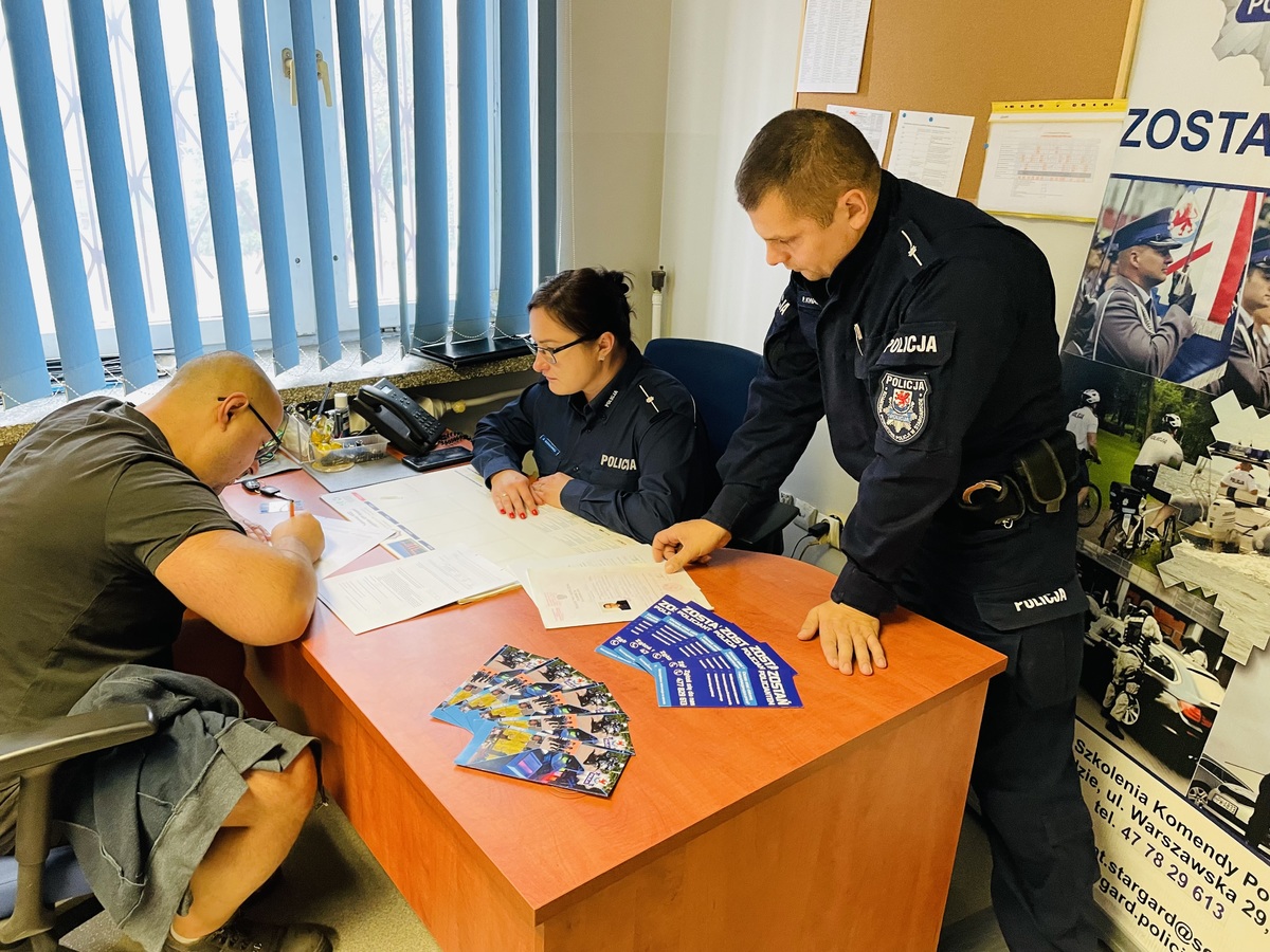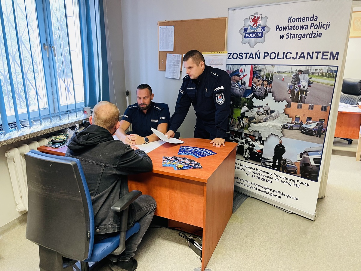 Stargardzcy funkcjonariusze odpowiedzialni za promocje zawodu policjanta spotykają się z potencjalnymi kandydatami. Na każdym z takich spotkań osobom zainteresowanym są wręczane ulotki, w których można znaleźć informacje dotyczące profilu kandydata czy przebiegu postępowania kwalifikacyjnego. Na spotkaniu policjanci udzieli niezbędnych informacji oraz omówili dokładnie cały proces rekrutacji. Była to także doskonała okazja do porozmawiania z mundurowymi o charakterze ich pracy oraz zapoznać się wymaganiami stawianymi kandydatom do służby. Ku naszemu zadowoleniu, podjęte działania przyniosły efekty, ponieważ już w trakcie spotkania otrzymaliśmy mnóstwo pytań, a chwilkę później pierwsze osoby złożyły swoje podanie o przyjecie do służby w Policji.