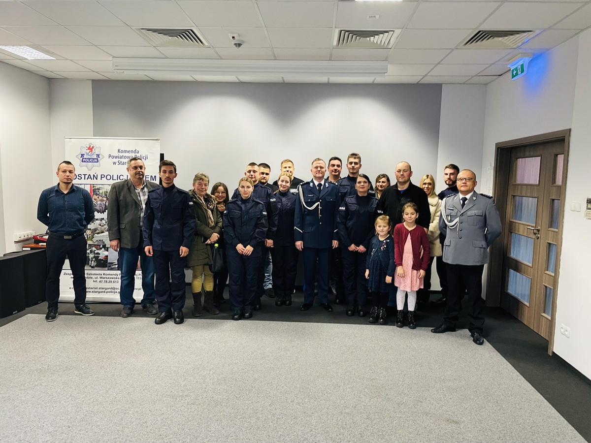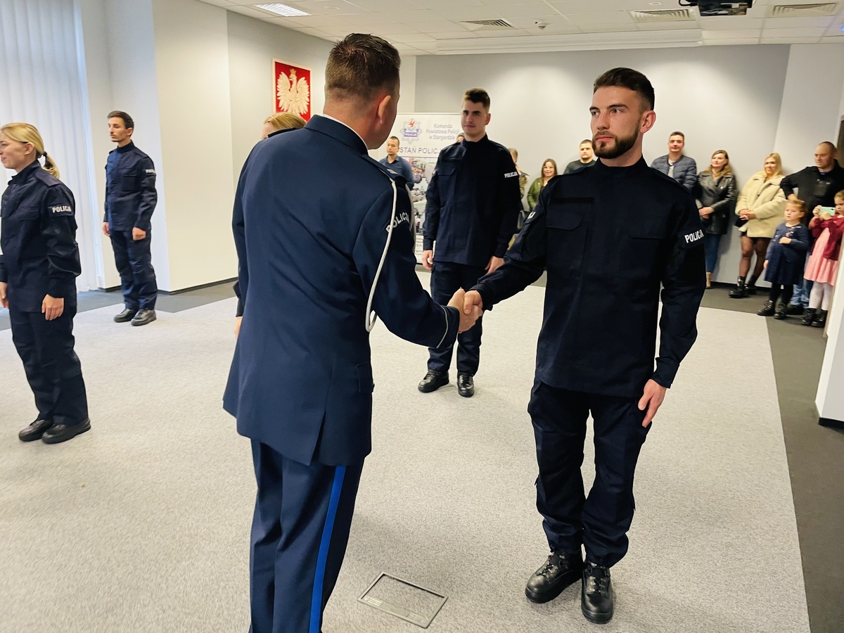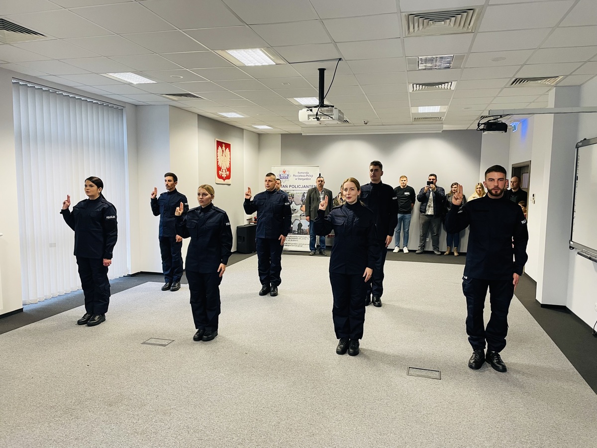 Dzisiaj w sali konferencyjnej stargardzkiej komendy siedmioro nowych policjantów złożyło uroczyste ślubowanie. Jest to ważny dzień dla każdego młodego policjanta, rozpoczynający ich służbę. Po wypowiedzeniu roty ślubowania I Zastępca Komendanta Powiatowego Policji w Stargardzie mł. insp. Michał Jaskulski pogratulował nowym funkcjonariuszom wyboru drogi życiowej i wstąpienia w szeregi policyjnej formacji. Podkreślił, że zobowiązali się oni strzec bezpieczeństwa, służyć obywatelom, a codzienną służbę powinni pełnić godnie i traktować ją z najwyższą powagą.Przed młodymi stażem funkcjonariuszami kurs podstawowy, a także adaptacja zawodowa po zakończeniu których nowi policjanci rozpoczną służbę w naszej jednostce, gdzie będą dbać o bezpieczeństwo mieszkańców naszego powiatu.