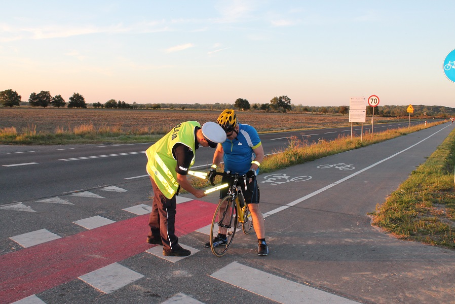 Podstawowym warunkiem bezpieczeństwa rowerzystów jest poruszanie się po wytyczonych ścieżkach zgodnie z przepisami o ruchu drogowym. Niestety rowerzyści są jednak niewystarczająco widoczni na drodze. Zdarza się, że kierowcy zbyt późno ich dostrzegają, a co za tym idzie możliwość wykonania bezpiecznego manewru jest w takim momencie utrudniona. Wpływ na to ma ciemny strój, brak odpowiedniego oświetlenia, a przede wszystkim elementów odblaskowych. Aby poprawić w tym zakresie bezpieczeństwo, mundurowi na drogach wręczali elementy odblaskowe.