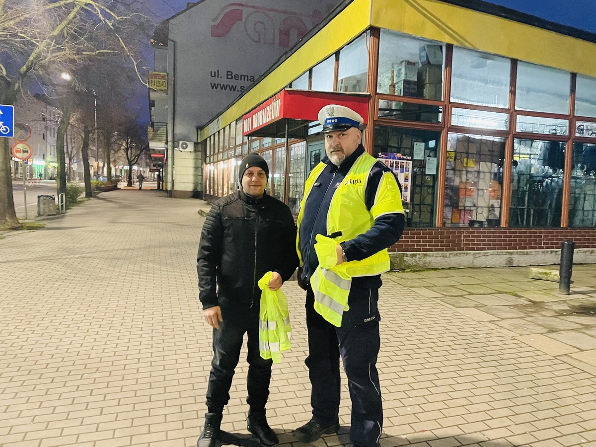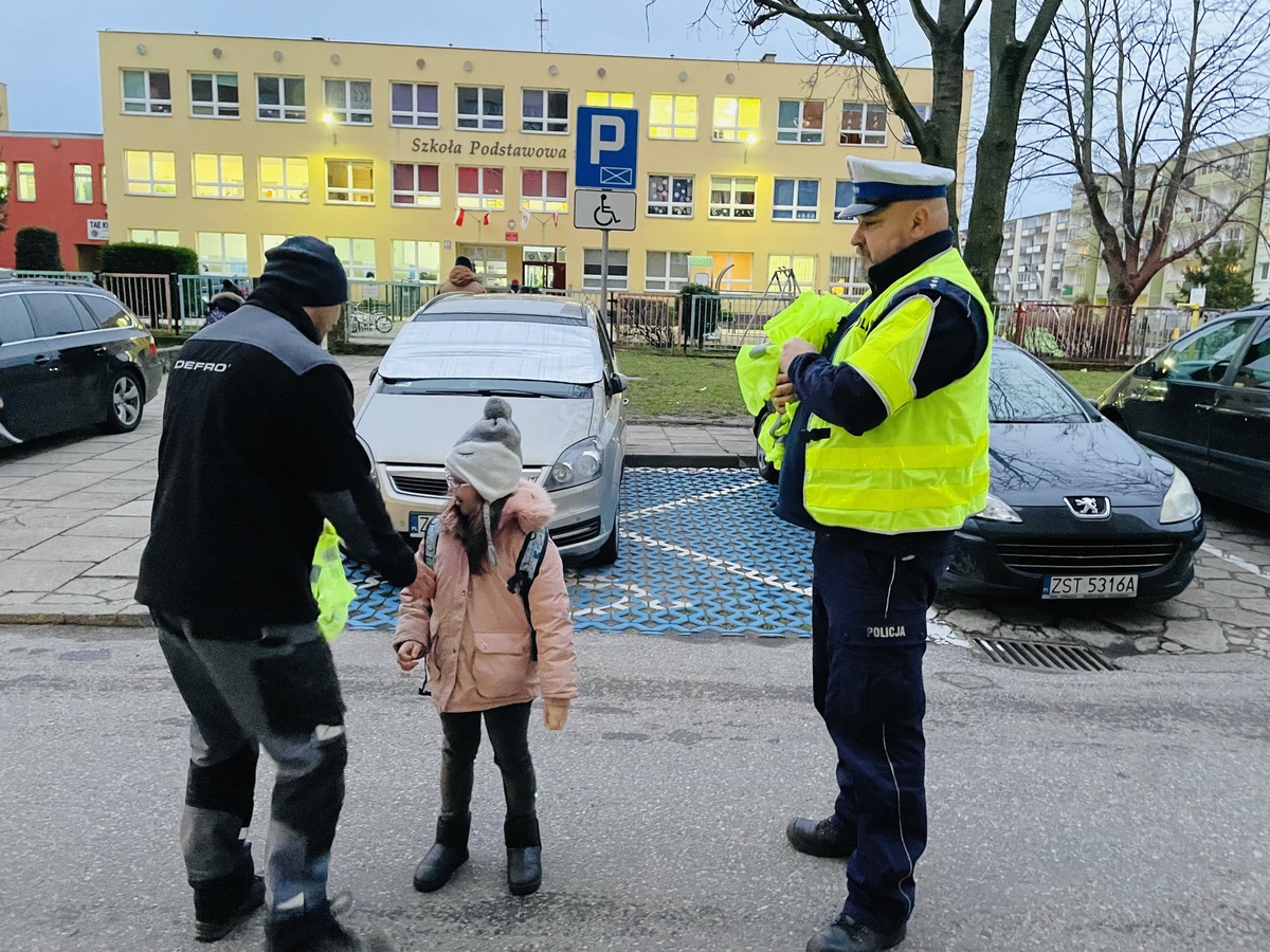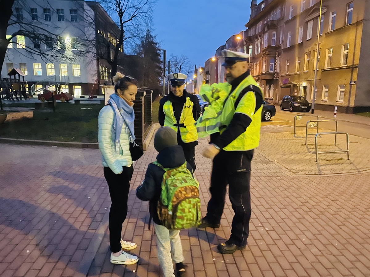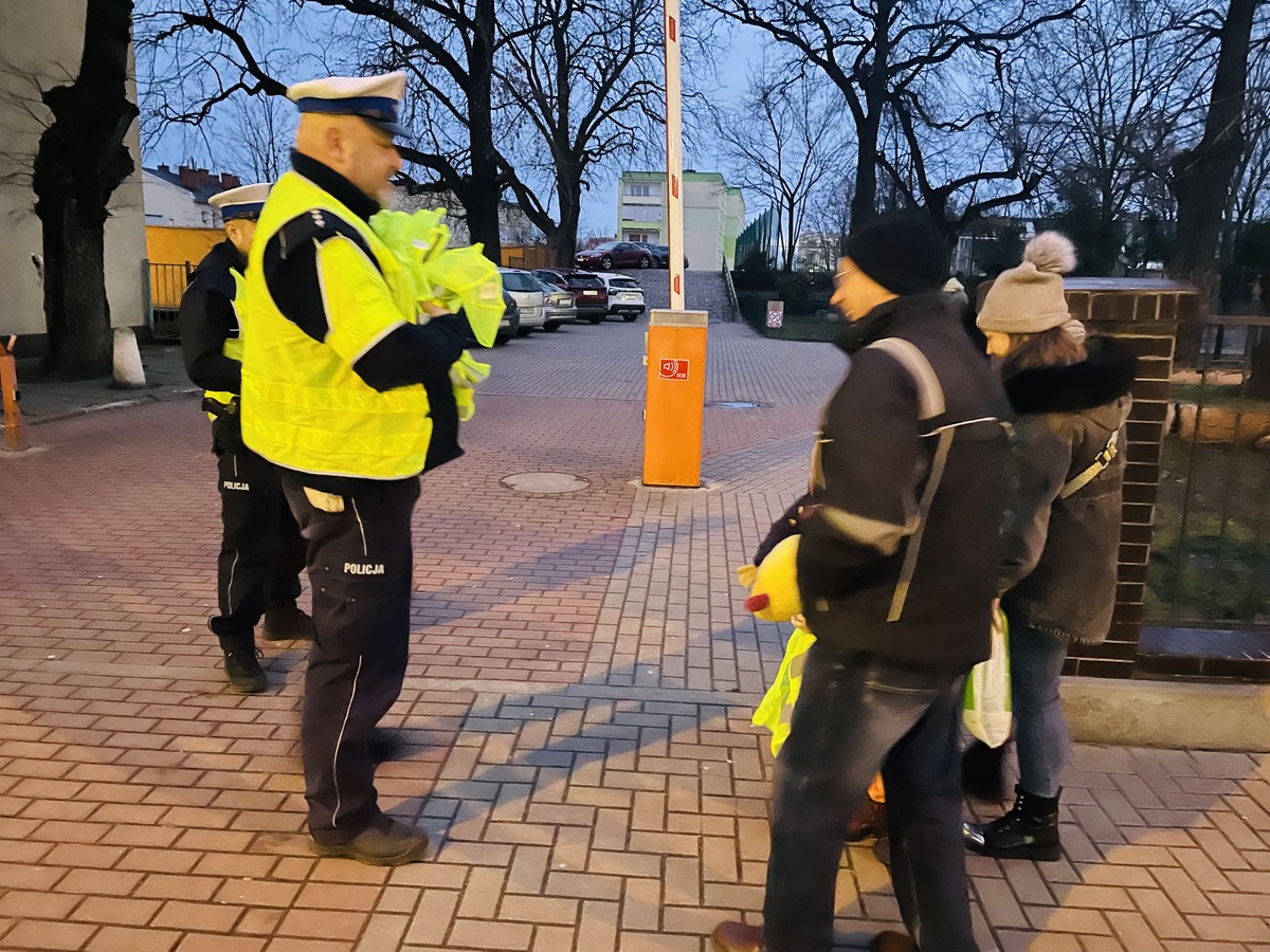 Policjanci z Wydziału Ruchu Drogowego przeprowadzili w godzinach porannych akcję „Dzień odblasków”, której głównym celem było zachęcenie jak największej liczby niechronionych uczestników ruchu drogowego do korzystania z elementów odblaskowych, nie tylko po zapadnięciu zmroku i nie tylko poza obszarem zabudowanym.