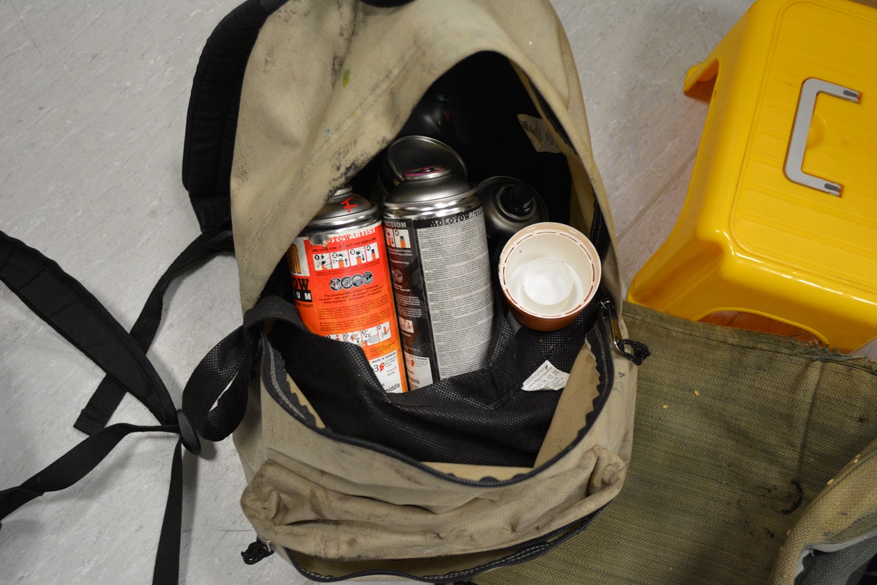 Funkcjonariusze SOK patrolując teren przyległy do dworca kolejowego w Stargardzie dostrzegli osoby wykonujące nielegalne graffiti na zaparkowanych w bocznicy pociągach. Ich interwencja skutkowała ujęciem dwóch sprawców tego przestępstwa i przekazaniu ich stargardzkiej policji. Szybko ustalono, że jest to 38-letni obywatel Niemiec oraz 29-letni obywatel Włoch. W miejscu zniszczenia mienia oraz na drodze ucieczki w Parku 3 Maja zabezpieczono również torby z puszkami.