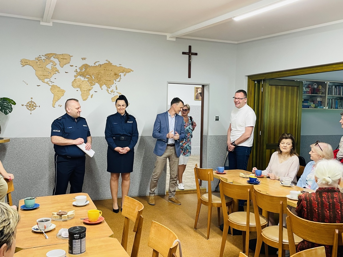 Podczas spotkania rozmawialiśmy o zagrożeniach, jakie napotkać mogą osoby starsze w dzisiejszym świecie. Oprócz rozmów o bezpieczeństwie niechronionych uczestników ruchu drogowego, aktualnych przepisach dotyczących między innymi obowiązku i sposobu noszenia elementów odblaskowych nie zabrakło tematów związanych z oszustwami osób starszych metodami „na wnuczka, policjanta, szklankę wody czy „blika”. Uświadamialiśmy wszystkich będących na spotkaniu o sposobach działania oszustów, a także prawidłowego reagowania na tego typu przypadki.