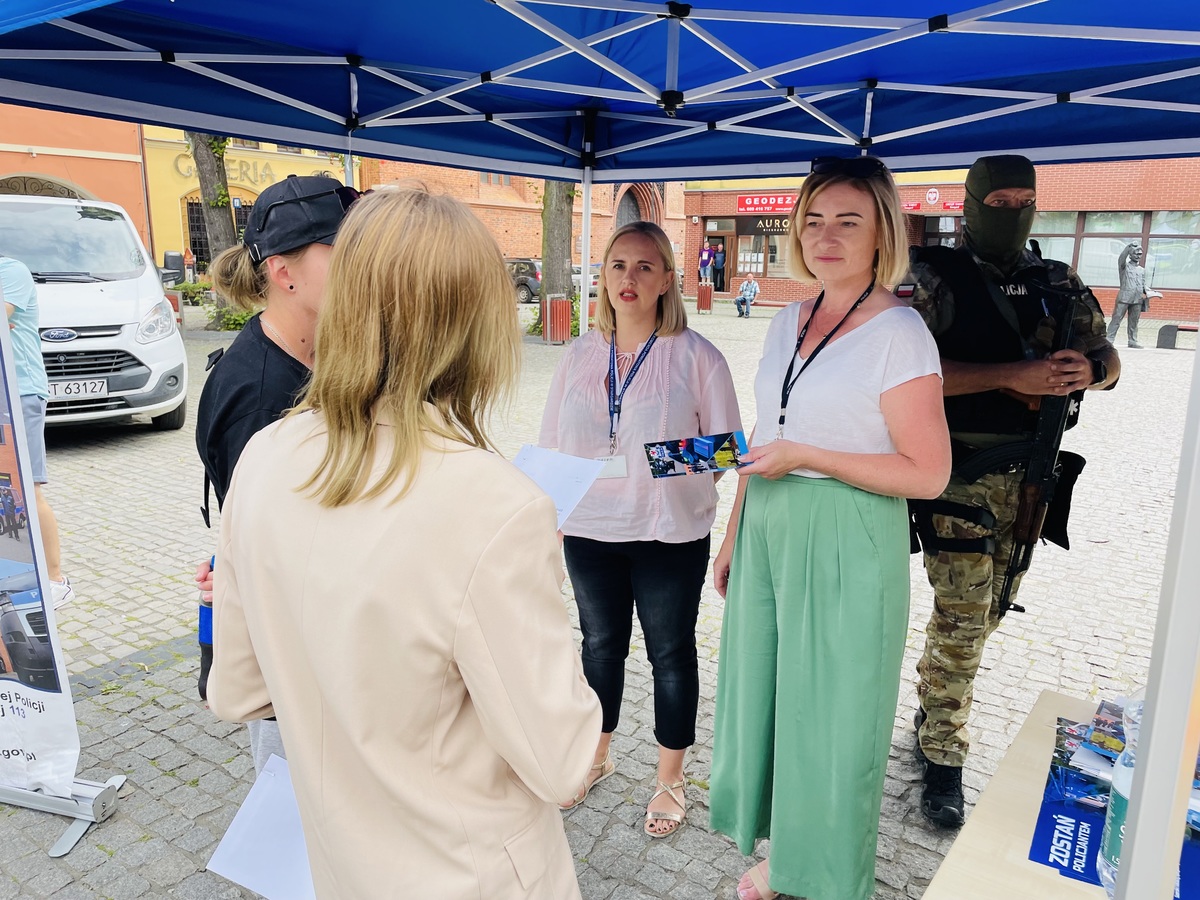 Spotkanie było również świetną okazją do promowania zawodu policjanta. Każdemu zainteresowanemu policjanci oraz pracownicy Zespołu Kadr dokładnie wytłumaczyli, jak wyglądają poszczególne etapy postępowania kwalifikacyjnego, jakie dokumenty należy złożyć oraz gdzie szukać informacji dotyczących procedury rekrutacyjnej. Funkcjonariusze wręczali specjalnie przygotowaną przez nich ulotkę informacyjna, jak zostać policjantem. Były w niej podane wszystkie niezbędne informacje o warunkach, wymaganiach oraz etapach postępowania kwalifikacyjnego.