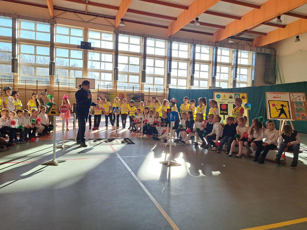 Tematem prelekcji było również bezpieczeństwo na drodze i w jej pobliżu. Policjantka omówiła kilka istotnych informacji o sygnalizacji świetlnej, zasadach jej funkcjonowania, bezpiecznego sposobu przechodzenia przez pasy w miejscach gdzie nie ma sygnalizacji świetlnej oraz zachowaniach na drodze w czasie ograniczonej widoczności. Sprecyzowała także sposób bezpiecznego korzystania ze środków transportu, między innymi jak postępować podczas przejazdu autobusem oraz o obowiązku korzystania z fotelików samochodowych i zapinania pasów bezpieczeństwa przed każdą podróżą.