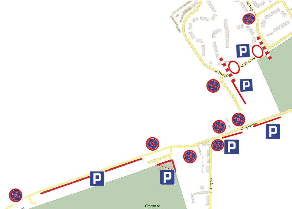 31.10. (poniedziałek) od 8:00 do 18:00 oraz 1.11. (wtorek) od 6:00 do 18:00 nie będzie przejazdu: odcinkiem ul. Kościuszki – od wjazdu na parking sklepu Kaufland do skrzyżowania z ulicą Spokojną; odcinkiem ul. Przedwiośnie – wzdłuż Starego Cmentarza Komunalnego. Z zamkniętych odcinków ulic będą mogły korzystać jedynie pojazdy MZK, TAXI oraz zaopatrzenia – za okazaniem zezwolenia.