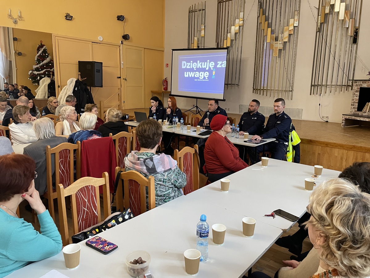 Debatę rozpoczęła rzeczniczka stargardzkiej komendy, która przywitała uczestników spotkania przedstawiając jednoczenie funkcjonariuszy biorących udział w wydarzeniu. Następnie głos zabrał mł. insp. Emil Ubych- Zastępca Komendanta Powiatowego Policji w Stargardzie, który przedstawił główne cele debaty oraz omówił zagadnienia, które zostaną przedstawione przez mundurowych. Pierwszy blok tematyczny spotkania rozpoczęła st. sierż. Adrianna Szczerba, która za pomocą prezentacji omówiła analizę bezpieczeństwa na drogach powiatu. Przestrzegała przed tragicznymi skutkami niewłaściwych zachowań na drodze. Przedstawiona została analiza wypadków, kolizji i ich sprawców oraz jak zadbać o bezpieczeństwo pieszych i rowerzystów szczególnie w okresie jesienno – zimowym. Następnie głoś zabrała st. sierż. Karolina Dawidowicz, która omówiła dokładnie zagrożenia, na jakie narażone są osoby ze strony oszustów. Wśród omawianych przestępstw znalazły się wszelkiego rodzaju oszustwa, w tym- na wnuczka, siostrzeńca, policjanta bądź przedstawiciela jakiejś instytucji. Z kolei Kierownik Rewiru I Dzielnicowych, który na podstawie wykonanej analizy w tym zgłoszeń na Krajową Mapę Bezpieczeństwa, przedstawił miejsca i problemy najczęściej zgłaszane funkcjonariuszom stargardzkiej komendy. Omówił również aplikację „Moja Komenda”, która pomaga mieszkańcom współpracować z Policją i zwiększać bezpieczeństwo w swojej okolicy.