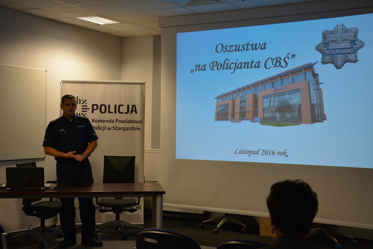 Komenda Powiatowa Policji w Stargardzie zorganizowała szkolenie adresowane do pracowników instytucji finansowych, które poświęcone było problematyce oszustw na szkodę seniorów, wyłudzeń środków pieniężnych oraz napadów.