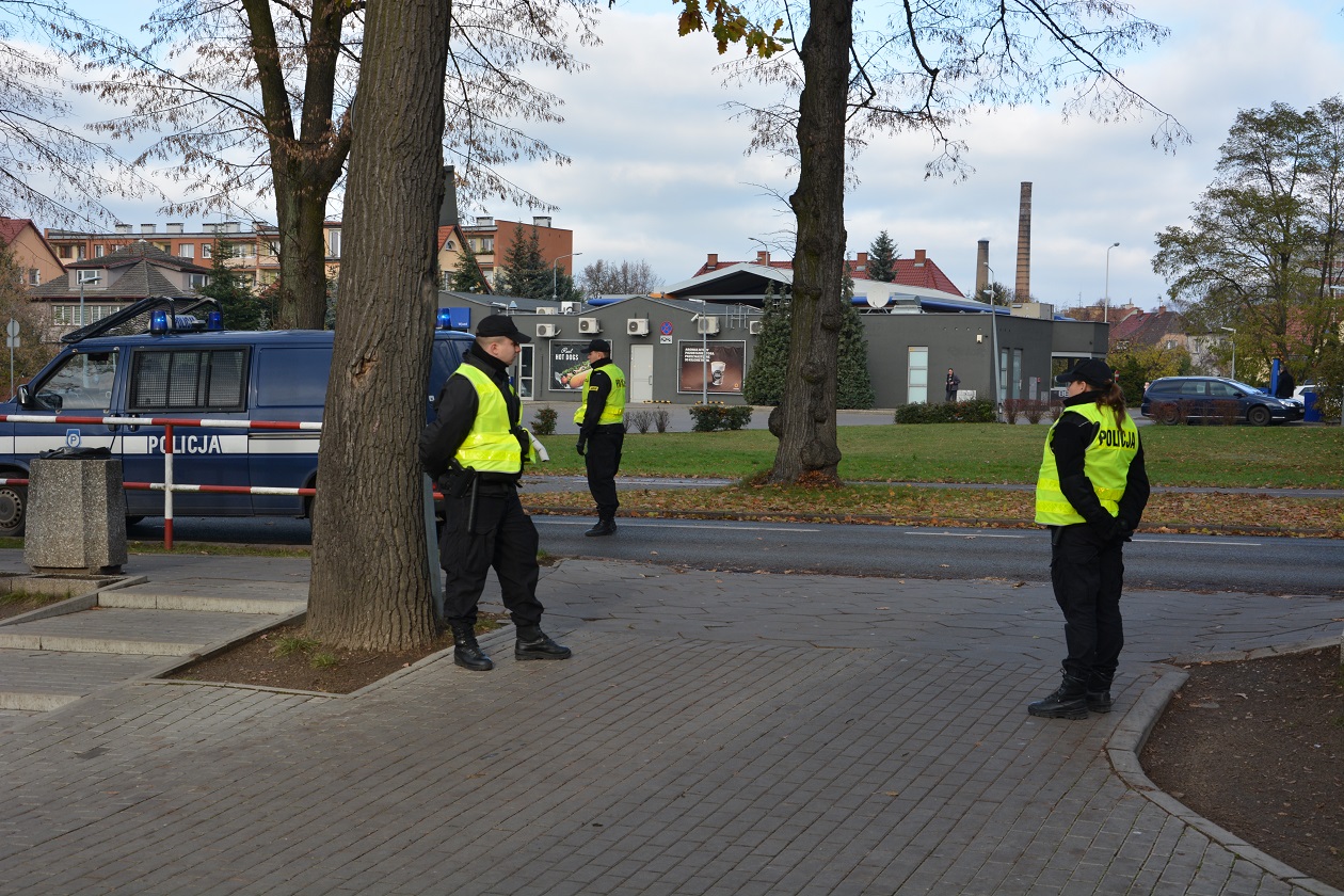 Funkcjonariusze przy użyciu psa do wyszukiwania materiałów wybuchowych dokonali rozpoznania drogi ewakuacyjnej, z ruchu wyłączono część ulicy 11 Listopada oraz zabezpieczono teren przyległy do szkoły, a kolejno dyrektor gimnazjum zgodnie z procedurami zarządził taką ewakuację we wcześniej sprawdzone przez mundurowych miejsce bezpieczne.