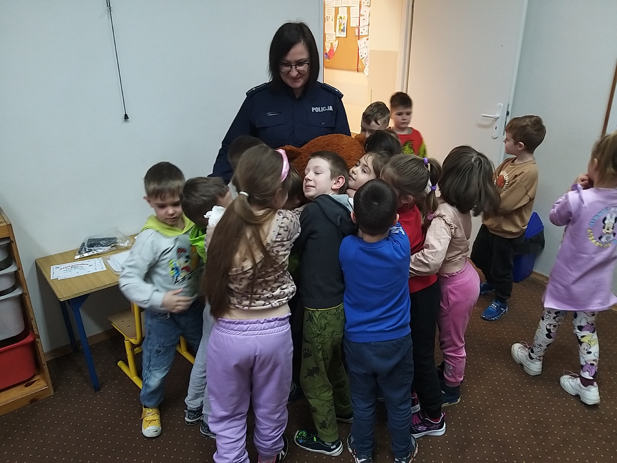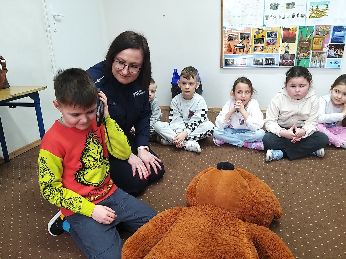 Podczas spotkania dzieci poprzez zabawę wzięły udział w szkoleniu z zakresu udzielania pierwszej pomocy i uratowały pluszowego misia. Maluchy nauczyły się sprawdzać bezpieczeństwo otoczenia, przytomność, oraz oddech potrzebującego pomocy pluszaka. Następnie w czasie ,,zabawy w telefon” najmłodsi uczestnicy szkolenia nauczyli się korzystać z nr alarmowego 112 i za jego pomocą wzywać służby ratunkowe. Do czasu przybycia pogotowia ratunkowego u misia prowadzony był masaż serca. Dzięki miłej zabawie dzieci przełamały opory związane ze strachem związanym z udzielaniem pierwszej pomocy i pomaganiem innym ludziom. Na koniec spotkania funkcjonariusze sprawili wielką niespodziankę i pokazali małym ratownikom policyjny radiowóz.