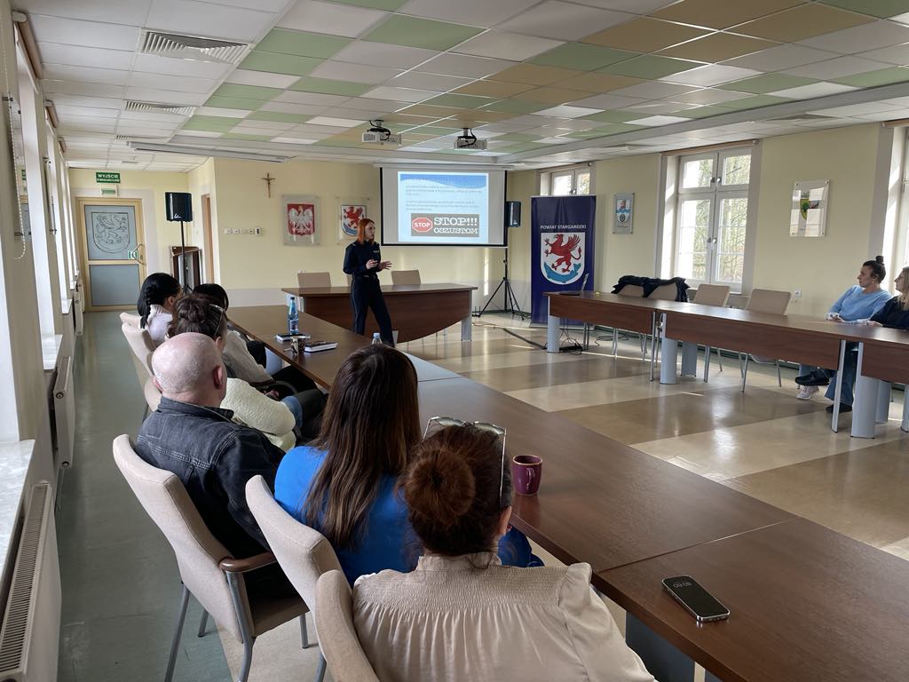 Ofiarą oszustów może stać się każdy, nie tylko osoby starsze, dlatego warto ostrzegać i rozmawiać o tym! O tym jak się chronić przed przestępcami mówiły dziś policjantki ze stargardzkiej komendy. Na wnuczka, policjanta i pracownika banku, kod BLIK - to najczęstsze metody, wykorzystywane przez oszustów. Policjantki spotkały się z pracownikami starostwa, aby wspólnie porozmawiać o bezpieczeństwie.
