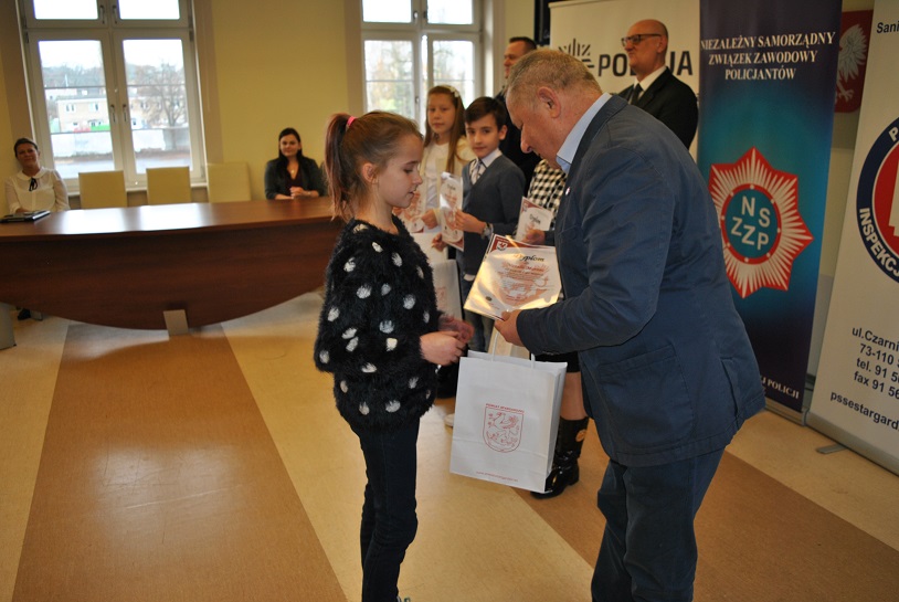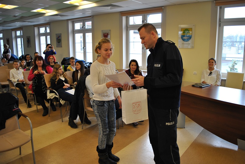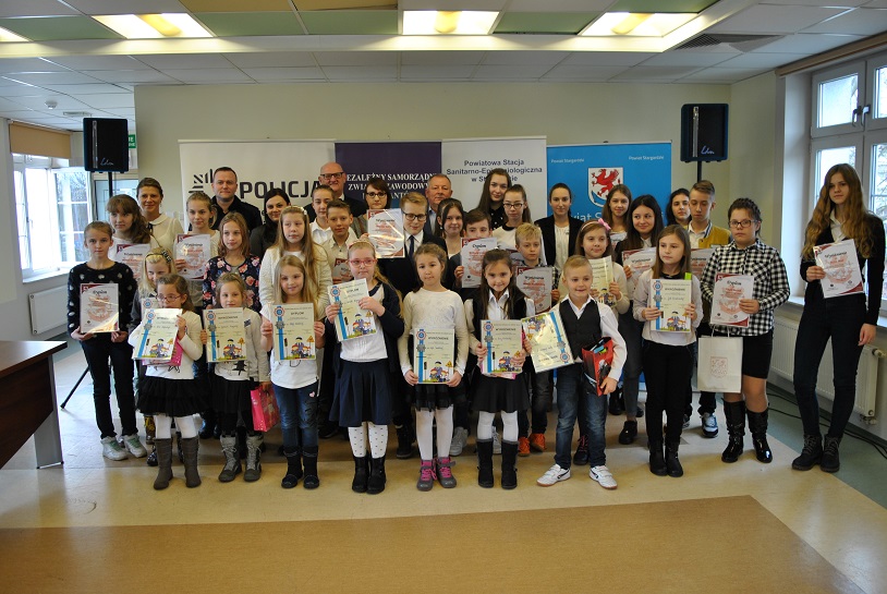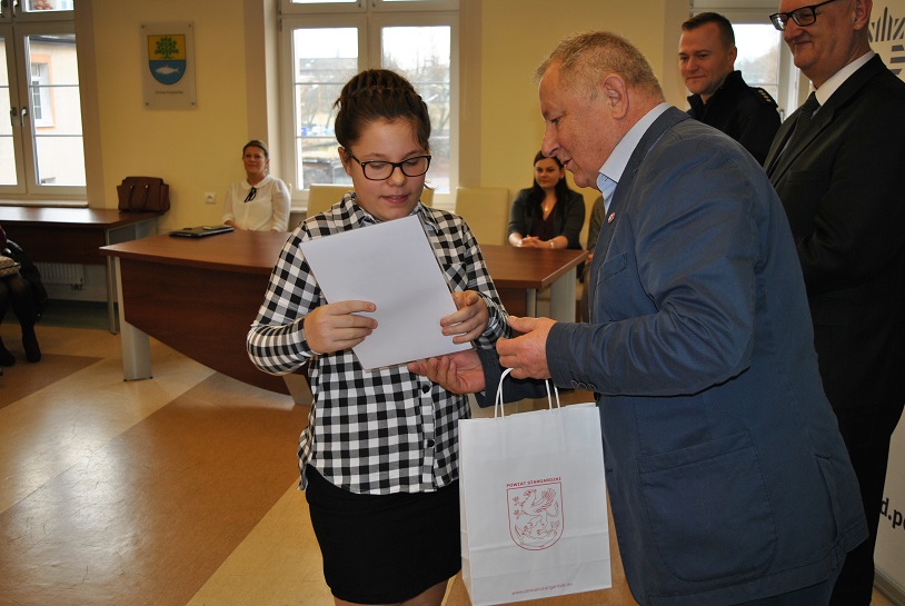 Wczoraj w siedzibie Starostwa Powiatowego w Stargardzie, gdzie odbyła się uroczystość wręczenia nagród i wyróżnień dla laureatów konkursów: Bezpieczna droga do szkoły 2016 oraz Moda na niepalenie, uczniów oraz ich rodziców, a także nauczycieli przywitał Pan Adam Chrałowicz – Członek Zarządu Powiatu, nadkom. Michał Jaskulski z Wydziału Prewencji stargardzkiej komendy oraz Pan Jacek Paczewski Dyrektor Powiatowej Stacji Sanitarno-Epidemiologicznej.